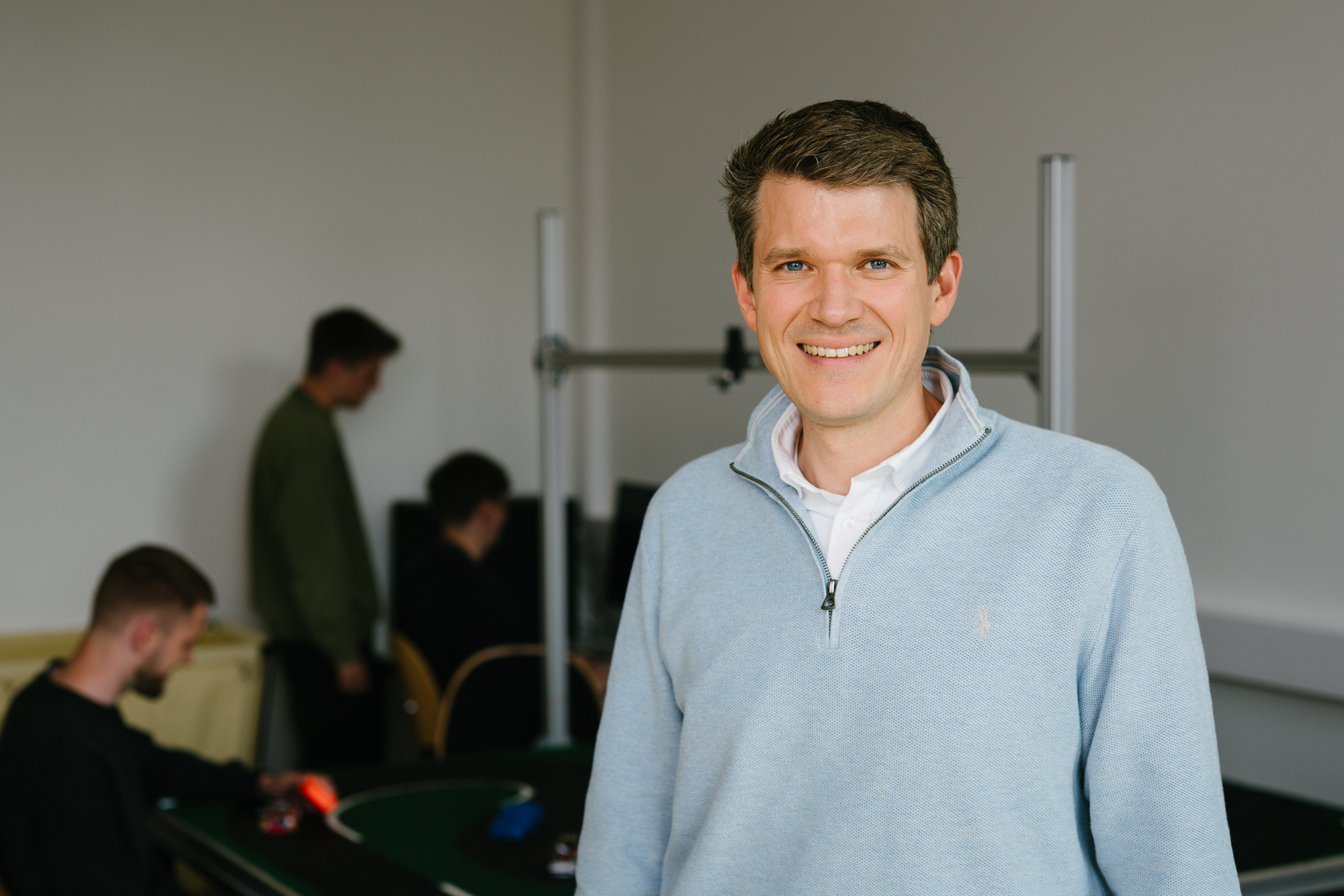 Mit der Aufgabe hat Wette ein aktuelles Thema aufgegriffen: die Entwicklung autonomer Fahrzeuge. Im PAW allerdings im hochschulkompatiblen Maßstab 1:28: „Wie bei einer Carrera-Bahn“, sagt Wette mit Blick auf die Möglichkeiten der Labore am Campus. Nach Abschluss des Projekts sollen die Rennwagen auch nicht einfach in der Garage verschwinden, sondern noch eine weitere Aufgabe erfüllen: „Wir wollen die Autos als Live-Demo etwa auf Studien-Messen zeigen und als Lernplattform in Lehrveranstaltungen einsetzen.“ Schon allein deshalb ist ein kompakter Maßstab gefragt, gehört doch auch die Konstruktion der passenden Rennstrecke zur Aufgabe. „Alles zusammen soll mobil, einfach zu transportieren und überall aufzubauen sein“, erläutert Wette. Alles zusammen ist vor allem ein anspruchsvolles mechatronisches System, für dessen Umsetzung es Kenntnisse in der Konstruktion, der Auslegung und Entwicklung von Elektronik und in der Programmierung braucht. Kein Problem für das fünfzehnköpfige Projekt-Team, das sich aus Studierenden aller drei Studiengänge zusammensetzt. Philip Wette: „Die Studierenden üben so auch das im Berufsleben übliche interdisziplinäre Arbeiten ein. Jede Disziplin bringt ihre Expertise mit und stimmt sich mit den anderen ab.“