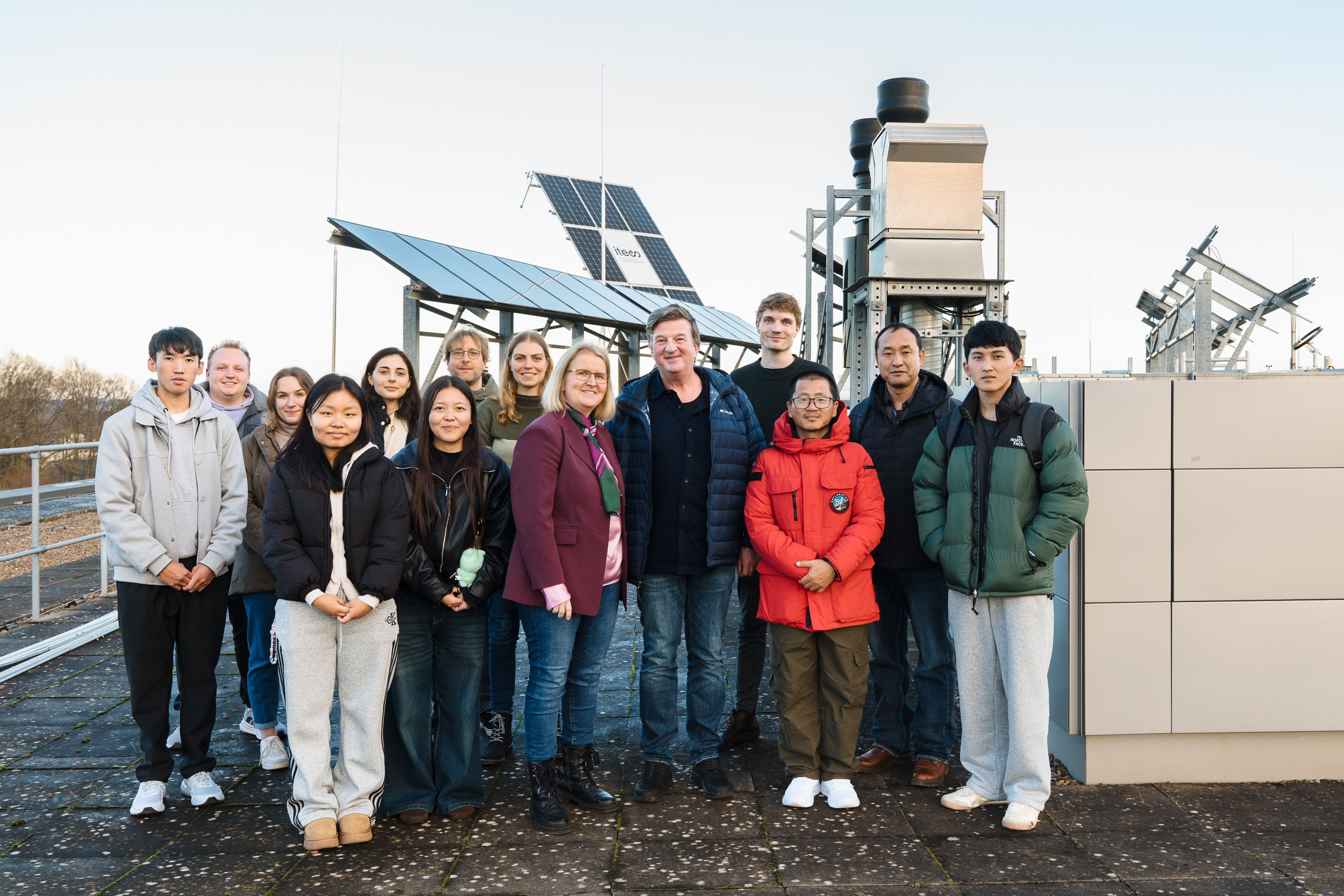 In Bielefeld gab Prof. Dr. Eva Schwenzfeier-Hellkamp vom Institut für Technische Energie-Systeme (ITES) Einblicke in das Photovoltaik-Labor im HSBI-Hauptgebäude. Dazu gehören neben dem Labor selbst auch eine große PV-Anlage auf dem Dach des Gebäudes und verschiedene Geräte in der Experimentierhalle. Hier wird unter anderem dazu geforscht, wie kristalline PV-Module aufgebaut werden können, sodass sie – ganz im Sinne einer Circular Economy – wiederverwendet, repariert und recycelt werden können. Dafür misst das Forschungsteam neben der Leistungsfähigkeit auch die Degradation der Zellen und kooperiert mit der Industrie, um häufige Problemstellen von PV-Modulen in Erfahrung zu bringen und nachhaltige Lösungen dafür zu entwickeln.
