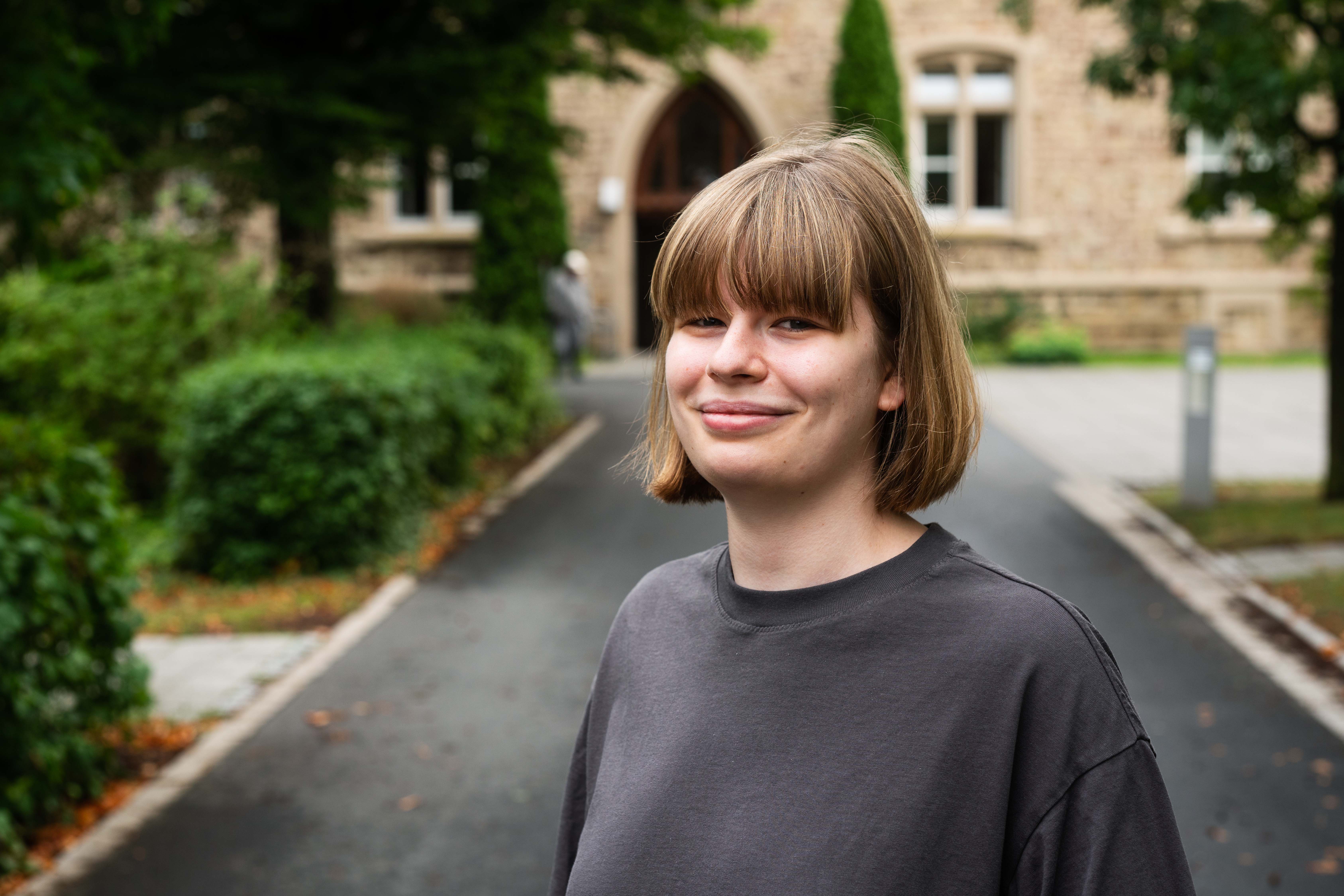 Im ersten Semester arbeitete Westfeld in einem Altenheim. Für ihr zweites Praxismodul wurde ihr die Wohngruppe Eben-Ezer zugeteilt. Hier übernimmt sie je nach individueller Einschränkung der einzelnen Bewohnerinnen und Bewohner unterschiedliche Aufgaben: Von Körperpflege, Unterstützung beim Essen bis hin zu Spaziergängen oder Ausflügen ist alles dabei. Ob sie Hemmungen hat, wenn es um die Körperpflege geht? „Es war nicht so schwierig, wie ich anfangs dachte, und es hilft, dass die meisten deutlich älter sind als ich. Außerdem tritt irgendwann ein gewisser Gewöhnungseffekt ein. Wenn ich das nicht könnte, wäre ich auch falsch in diesem Beruf.“