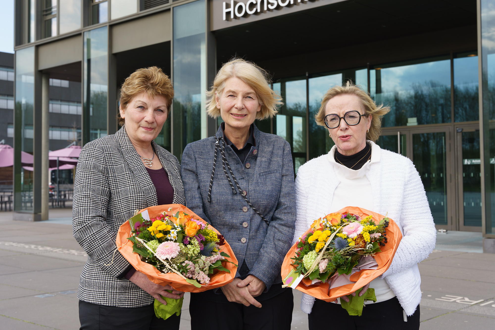Viele Jahre verdienstvoller Arbeit für die Hochschule: Prof. Dr. Ingeborg Schramm-Wölk verabschiedet Christiane Claus und Prof. Dr. Marianne Assenmacher.
