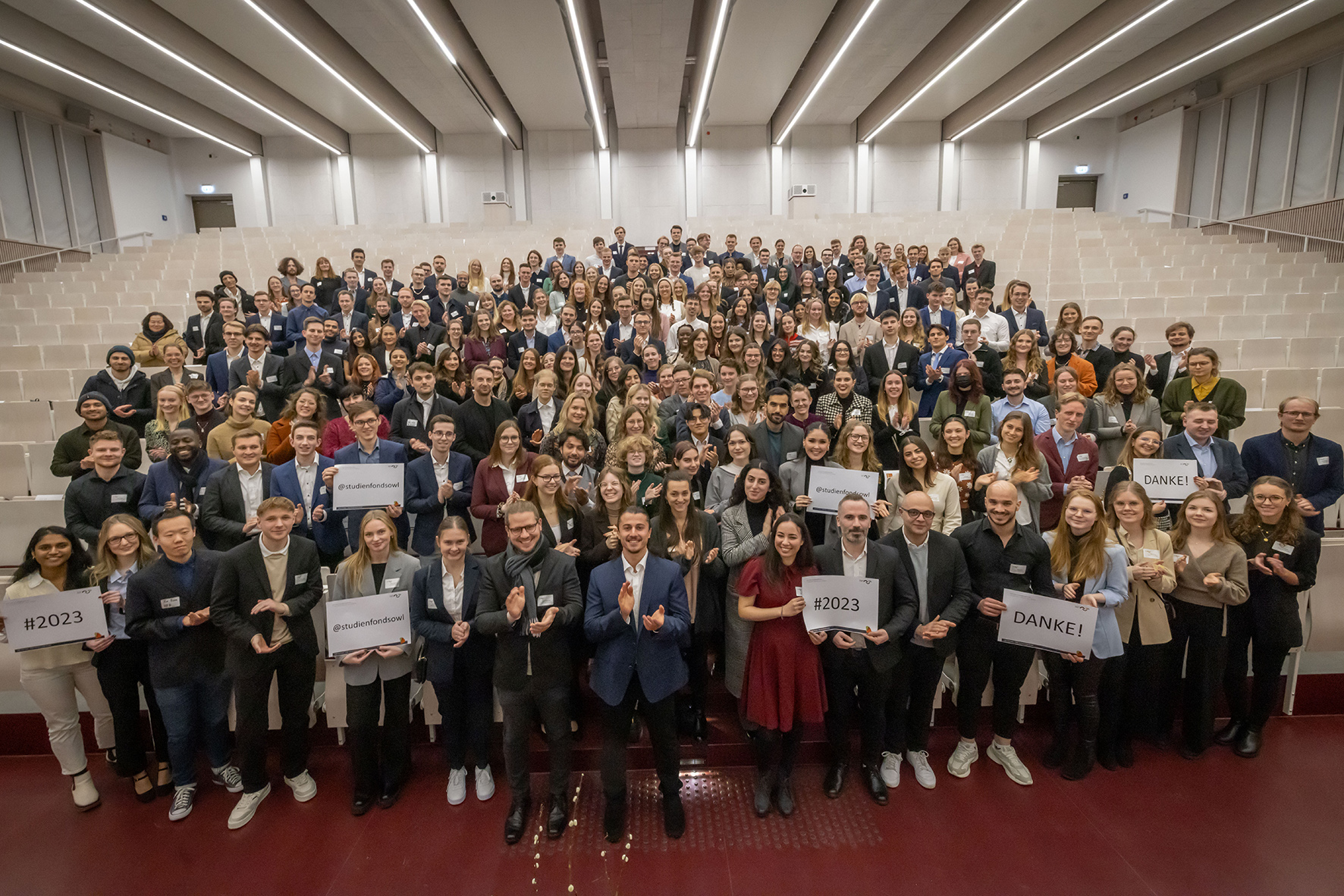 Die Challenge wurde im Rahmen der feierlichen Stipendienvergabe an der Universität Bielefeld gestartet. Durch den Abend führten Studienfonds-Geschäftsführerin Katja Urhahne und Alumnus Tobias Tönsfeuerborn. Als Gastgeber trat Prof. Dr. Dario Anselmetti als erster Redner ans Pult. Der Prorektor der Universität Bielefeld war einst selbst Mitglied der Auswahlkommission für die Studienfonds-Stipendien und gratulierte allen neuen Stipendiatinnen und Stipendiaten sehr herzlich, dass sie sich im Bewerbungsverfahren gegen die Konkurrenz behaupten konnten. „Genießen Sie Ihr Studium, genießen Sie die Förderung – ich wünsche Ihnen, dass das Studienfonds-Stipendium eines der Highlights Ihrer Studienzeit wird,“ appellierte er an die Studierenden, nicht nur den monetären Aspekt des Stipendiums zu berücksichtigen, sondern auch das ideelle Förderprogramm für ihre persönliche Entwicklung zu nutzen.