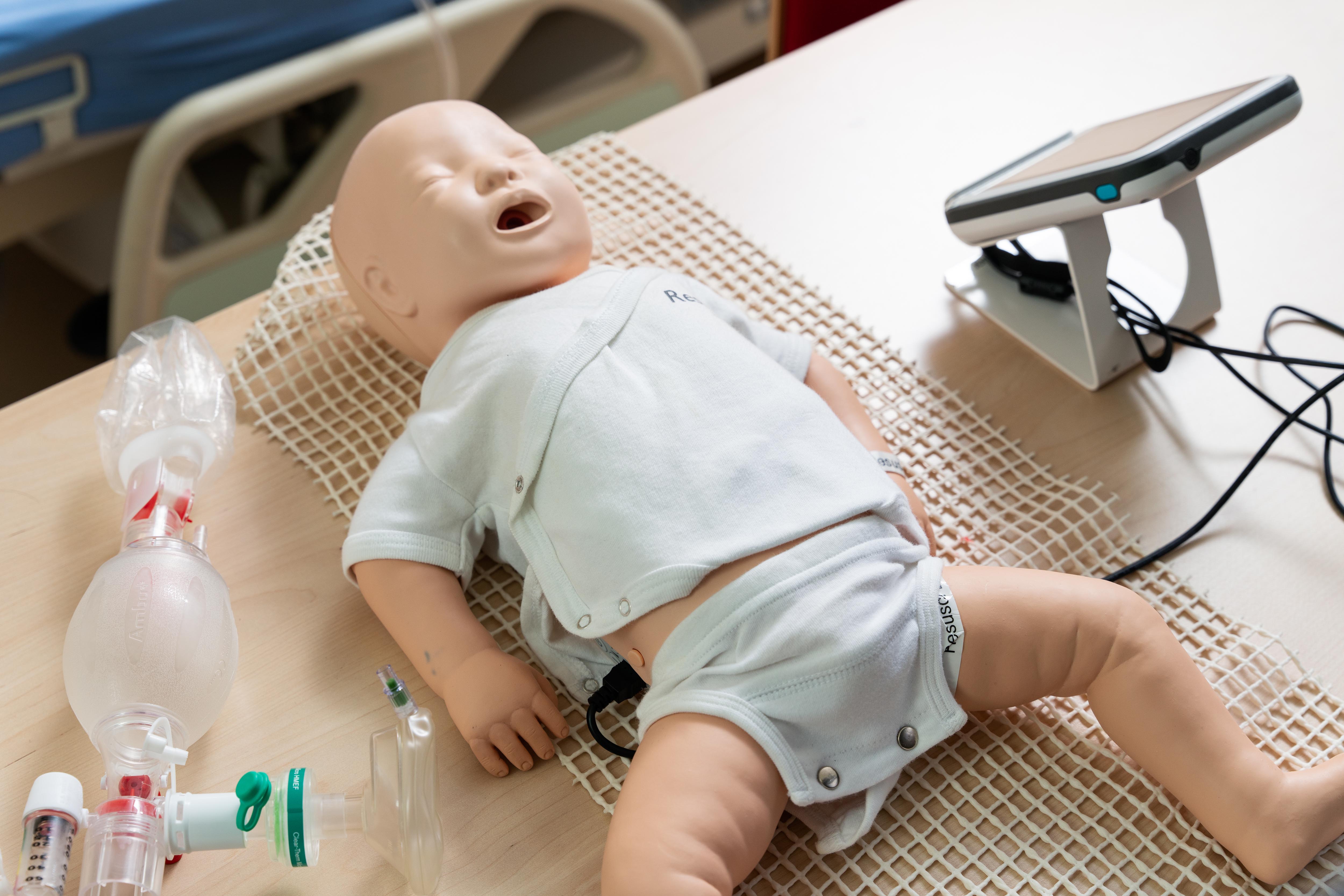 Die „Puppen“ sind dabei keineswegs nur Platzhalter, sondern Hightech-Simulatoren, mit denen sich viele geburtshilflich relevante Situationen nachstellen lassen – bis hin zur kompletten Geburt. Aber auch Materialien für einzelne Übungsschritte wie beispielsweise Arme zum Legen von Infusionen, Becken aus Kunststoff oder Babypuppen für das Erlernen der Erstuntersuchung des Neugeborenen kommen zum Einsatz.