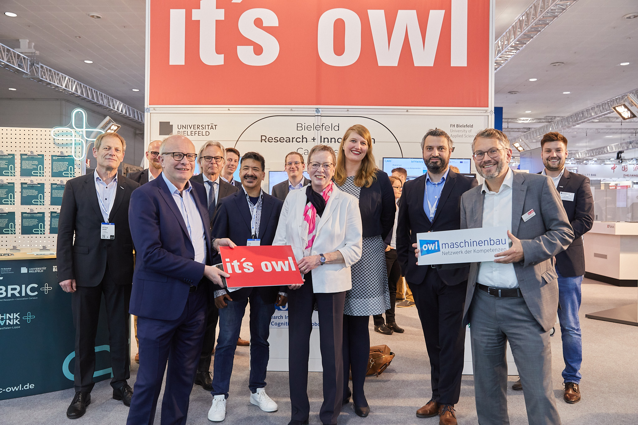 Vom 30. Mai bis 2. Juni präsentierten sich die Fachhochschule und die Universität Bielefeld zusammen auf dem Gemeinschaftsstand von OWL Maschinenbau, dem Spitzencluster it’s OWL und der OWL GmbH als Bielefeld Research + Innovation Campus (BRIC) auf der Hannover Messe 2022. Viele Gespräche mit Vertretern aus Industrie und Entwicklung zeigten, dass die Forschungsarbeit und die Angebote des Campus Bielefeld wahrgenommen werden und auf eine breite Nachfrage beim fachkundigen Publikum stoßen.BRIC am Gemeinschaftsstand it‘s OWL: Prof. Reinhold Decker, Ben Schattenberg, Bernhard Hoppe-Biermeyer, Herbert Weber, Marco Braun, Prof. Dr. Anant Patel, Daniel Baron, Marianne Thomann-Stahl, Almut Rademacher, Pedro Campos Silva, Wolfgang Marquardt (von links nach rechts).