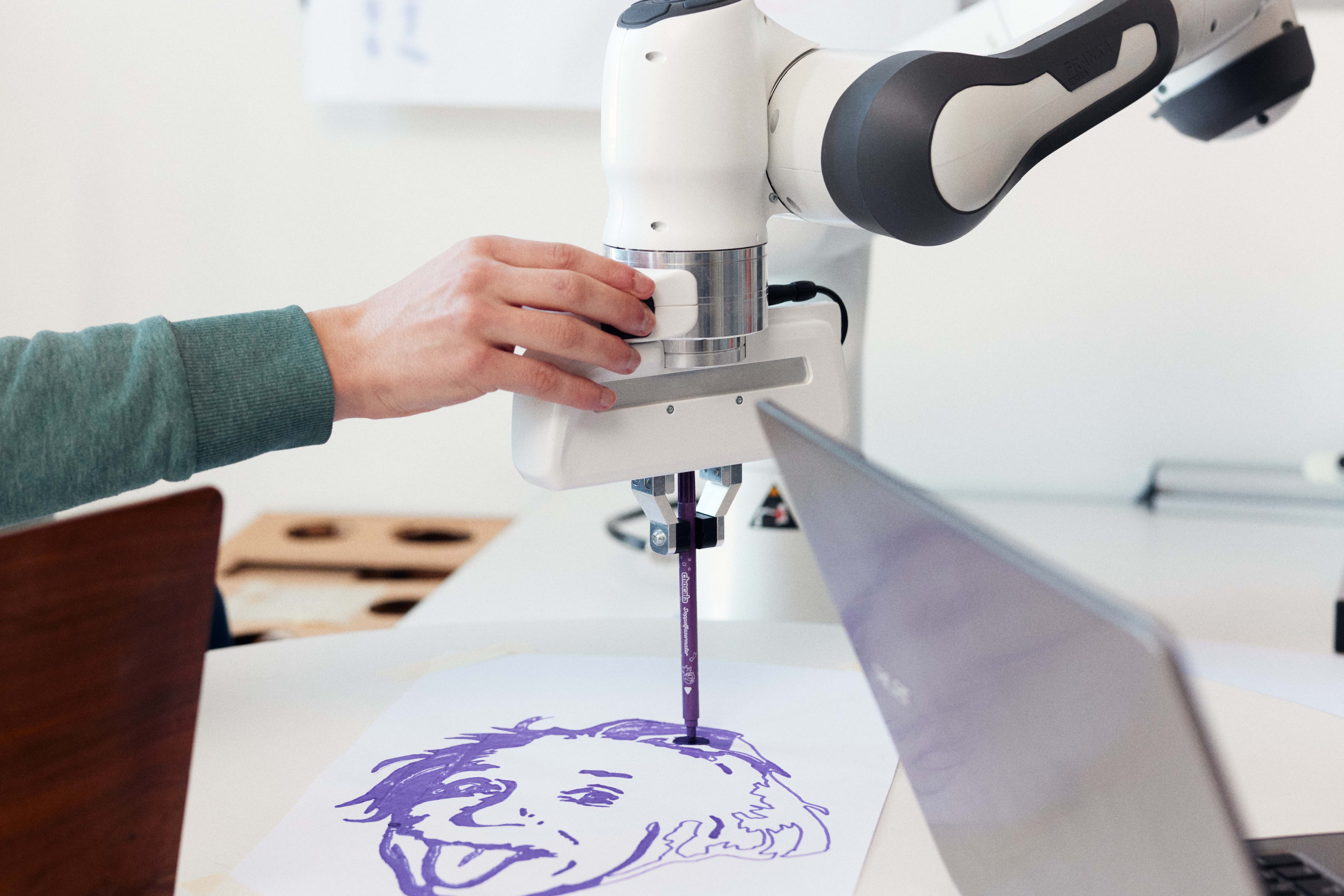 Riechmann war in seiner Gruppe für die Robotersteuerung zuständig, unter einer zusätzlichen Herausforderung: Durch Corona konnten die drei Studenten das Projekt zunächst nur am Computer simulieren und nicht direkt am Roboter arbeiten. Das war erst am Ende des Semesters möglich, als die Corona-Regelungen gelockert wurden. Riechmann erinnert sich: „Bei dem Überspielen auf den Roboter sind neue Probleme aufgetaucht, mit denen wir in der simulierten Umgebung nicht gerechnet hatten. Aber am Ende tatsächlich zu sehen, wie der Roboter erfolgreich die Porträts auf einen halben Millimeter genau nachzeichnet, war ein echtes Erfolgserlebnis!“