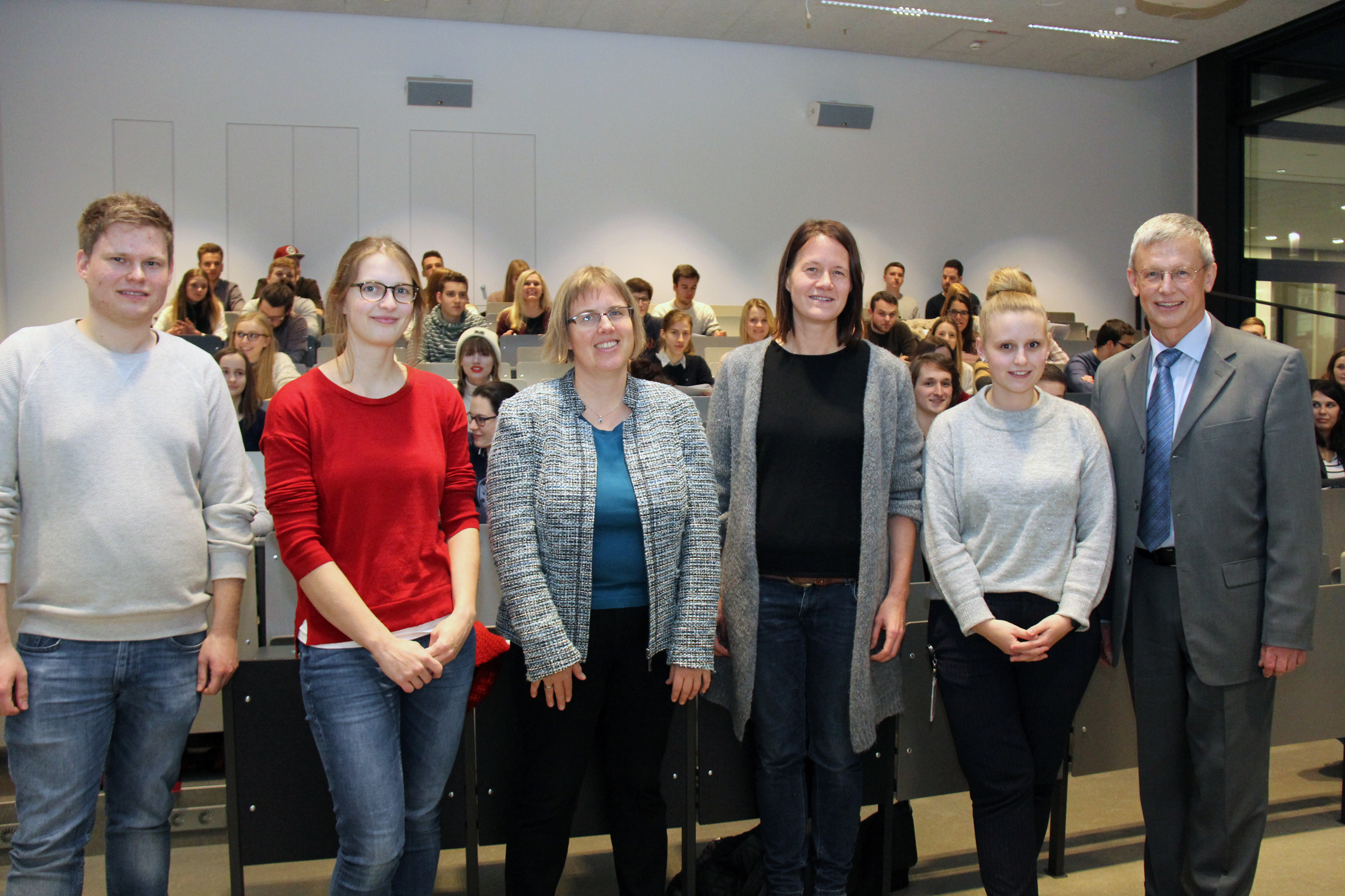 Zusammen mit Marion Abend, die in der Zentralen Studienberatung der FH Bielefeld für die Studienfinanzierungsberatung zuständig ist, stellte Prof. Dr. Volker Herzig das Stiftungsnetzwerk der FH Bielefeld und das Bewerbungs- und Auswahlverfahren von Stiftungen und Begabtenförderungswerken vor. Als weitere Referenten konnte er zwei Studierende gewinnen, die sich bereits erfolgreich um ein Stipendium des Studienfonds OWL und der Friedrich Ebert Stiftung und beworben haben. Pia Tapp von der Universität Bielefeld und Julian Dreier aus dem Fachbereich Wirtschaft und Gesundheit der Fachhochschule Bielefeld berichteten über ihre Erfahrungen und gaben Tipps für die Bewerbung. Beide waren sich einig, dass über die finanzielle Unterstützung hinaus auch die ideelle Förderung der Stiftungen, zu denen unter anderem Fortbildungsangebote, Mentorenprogramme und das Netzwerk zu anderen Stipendiaten gehören, sehr bereichernd sind.