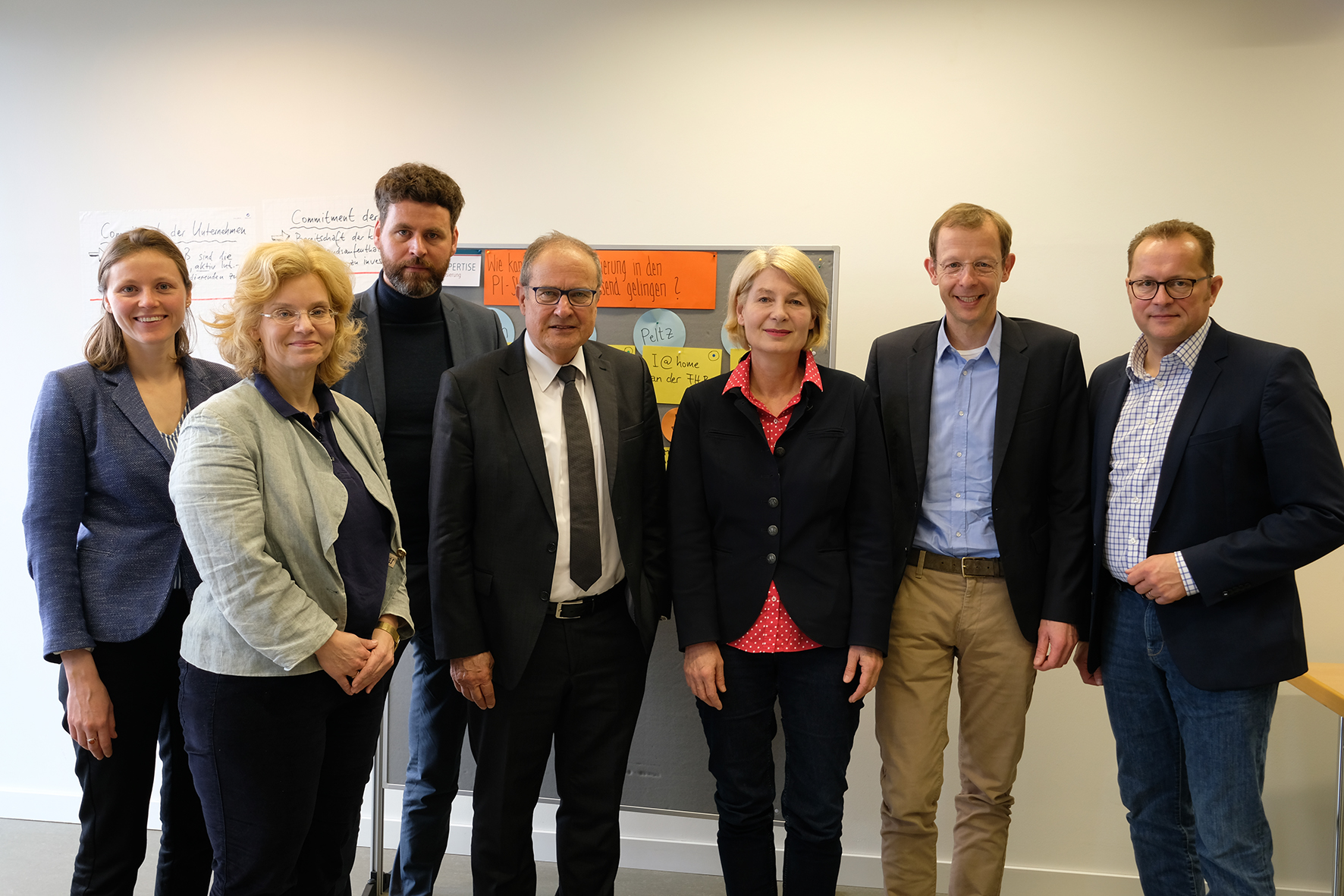 Begleitet und unterstützt wurde der Workshop von Mitgliedern der HRK-EXPERTISE Internationalisierung. Das Programm ist ein Projekt der Hochschulrektorenkonferenz (HRK) mit dem Ziel, die Internationalisierung in der deutschen Hochschullandschaft systematisch und nachhaltig zu verankern. Gleichzeitig soll das Thema „stärker in die Breite der Hochschulen getragen werden“ und neben Akteuren wie dem International Office oder dem Präsidium auch Studierende und Lehrende aktiv einbeziehen, erklärte Projektleiter Stephan Keuck. Als externer Berater fungierte Professor Dr. Joachim Metzner, der u.a. durch seine frühere Position als Präsident der TH Köln umfangreiche  Praxiserfahrung und Fachkompetenz in den Workshop einbrachte. Für die FH Bielefeld sprach er konkrete Empfehlungen zur weiteren Fokussierung und Vorgehensweise aus. Mit verschiedenen Beratungs- und Vernetzungsinstrumenten unterstützt das Projekt HRK-EXPERTISE Internationalisierung die Mitgliedshochschulen der HRK bei der Erarbeitung oder gezielten Weiterentwicklung institutioneller Internationalisierungsstrategien. Die FH Bielefeld durchlief bereits 2017 ein neunmonatiges Audit, das wichtige Empfehlungen für die Internationalisierung der Fachhochschule lieferte.