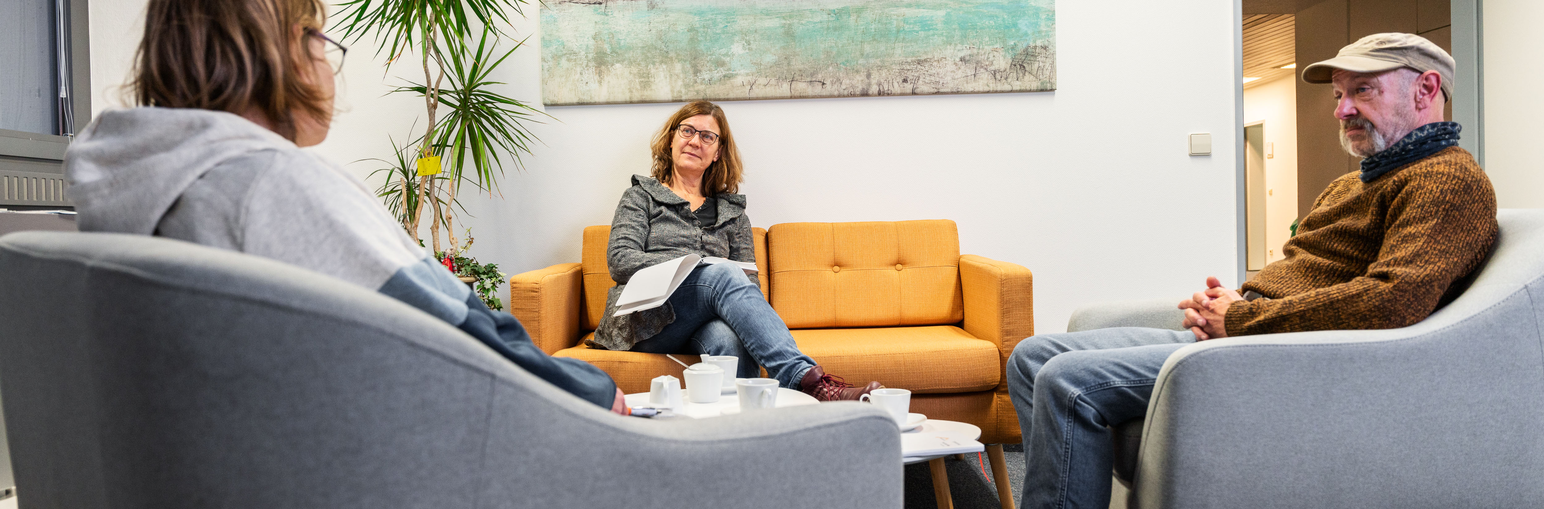 Die Akquise der BEA-Begleitungen findet häufig über Selbsthilfegruppen, deren Netzwerke, Mund-zu-Mund-Propaganda oder auch bereits tätige BEA-Begleitungen statt. Der erste Kontakt zwischen BEA-Begleitung und Teilnehmerin oder Teilnehmer entsteht dann in der Regel während eines gemeinsamen Treffens mit den vermittelnden Prozessmanagerinnen und -managern. Dafür wurden spezielle Räumlichkeiten eingerichtet, unter anderem in der Bielefelder Feilenstraße, unweit vom Bielefelder Hauptbahnhof und dem Jobcenter: Bequeme Sessel, ein paar Pflanzen und warmes Licht sorgen für eine entspannte Atmosphäre abseits vom behördlichen Kontext.