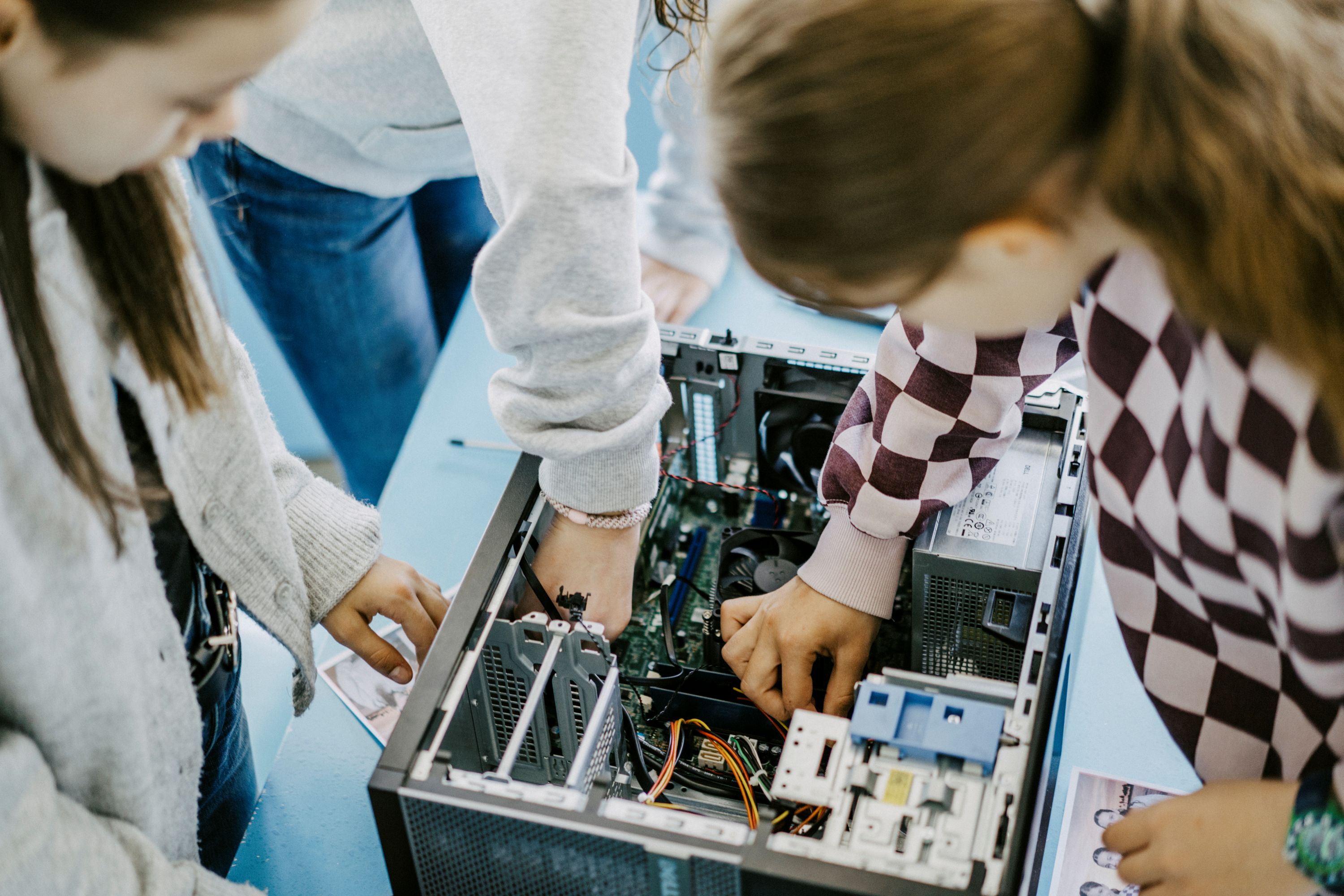 Am diesjährigen bundesweiten Girls’ und Boys’ Day am 23. April schnupperten 75 Schülerinnen und 10 Schüler Hochschulluft an der Hochschule Bielefeld und bekamen Einblicke in Berufsfelder und Studiengänge in Bielefeld, Minden und Gütersloh.Diese Schülerinnen haben gelernt, wie ein Computer von innen aussieht und was man daran reparieren kann.