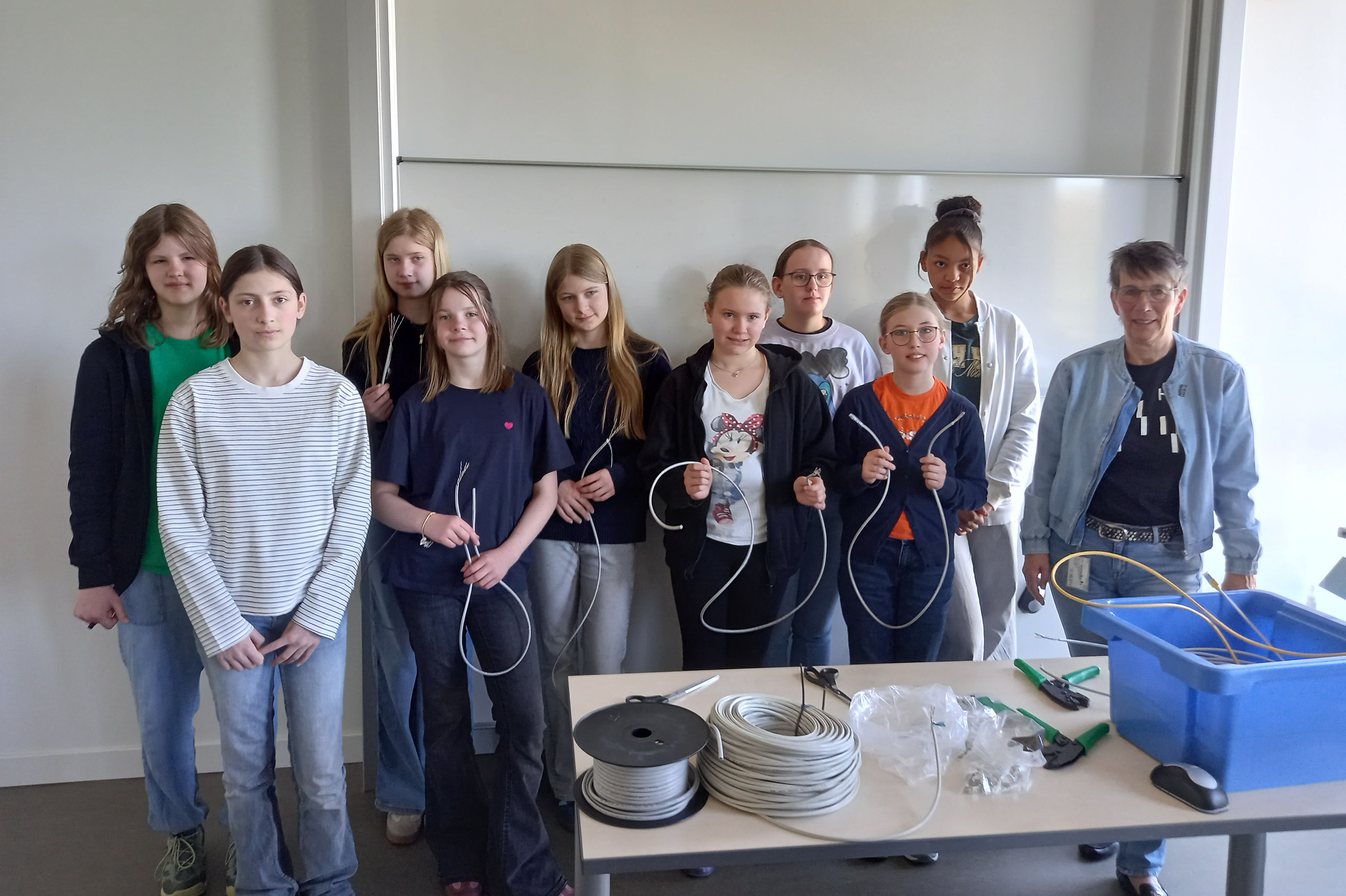 Bei „Netzwerktechnik für Anfängerinnen" am Fachbereich Wirtschaft ging es um Technologien und Prinzipien, die es ermöglichen, Computer in einem Netzwerk miteinander zu verbinden. Dabei haben die Mädchen auch selbst Netzwerkkabel hergestellt.