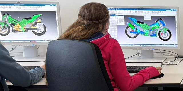 Am Campus Minden erhielten zwölf Schülerinnen praxisnahe Einblicke in die dort angebotenen MINT-Studiengänge. Mit einem studiengangsübergreifenden Projekt wurden modellhaft Inhalte von ingenieurtechnischen Berufen vermittelt. Anhand einer Übungsfirma konnten die Konstruktion, der Bau und die Vermarktung eines fiktionalen Produktes erlebt werden. Dafür hatten die Schülerinnen der Jahrgangsstufen 7 bis 9 die Aufgabe, das Design eines Motorrades mit einem Architektur-Programm farblich auf eine bestimmte Zielgruppe anzupassen. Auch lernten sie, wie die Schaltung eines Fahrerassistenzsystems entwickelt und das Produkt auf einer Website vermarktet wird. Nach einer Pause widmeten sich die Schülerinnen zudem den Berufsfeldern im Bau- und Architekturbereich. Mit einem originellen Architektur-Memory wurden Fotos und Grundrisse prägnanten Gebäuden zugeordnet und Projektbeispiele besprochen.