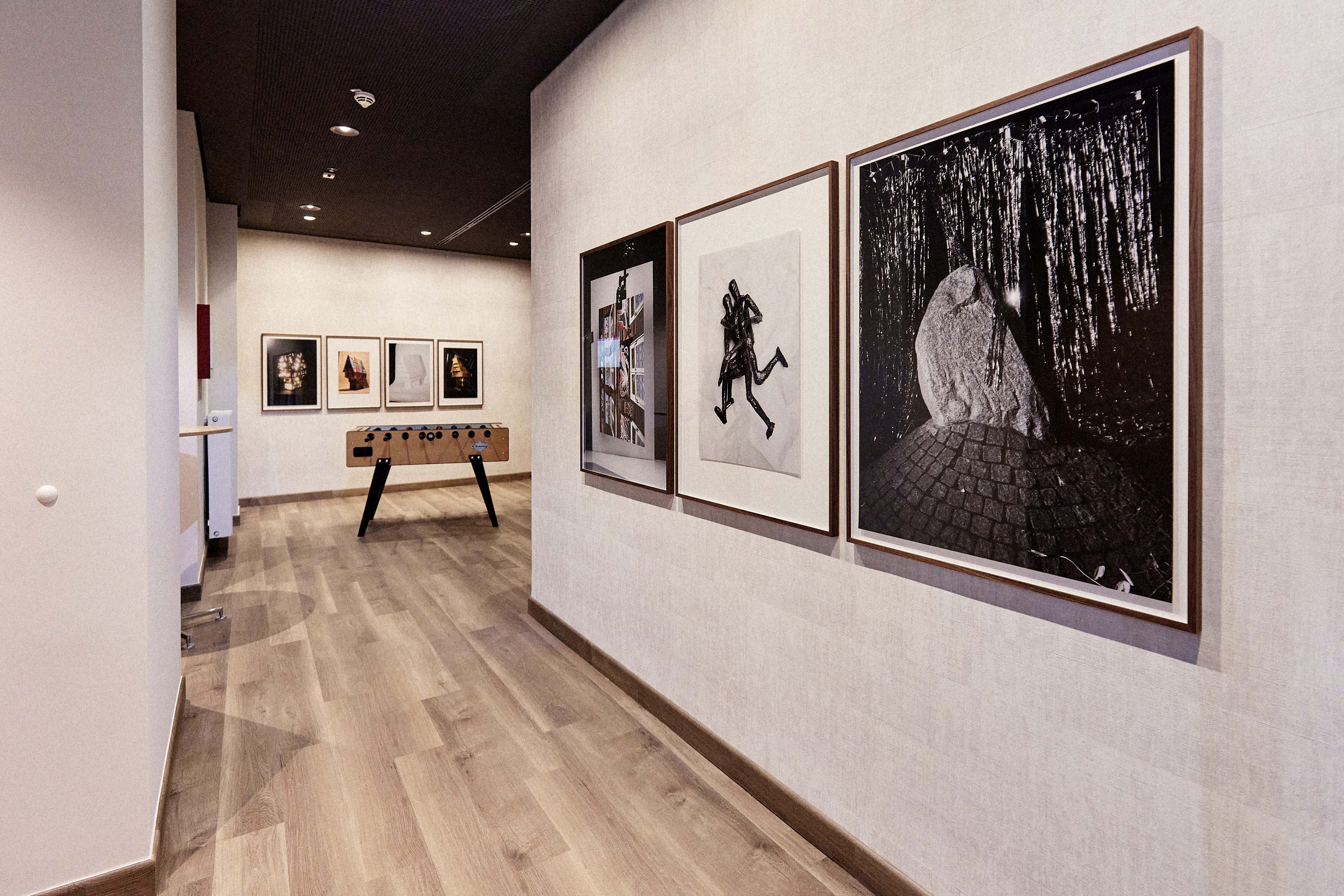 Zum Konzept, das die Studierenden vorlegen müssen, zählt auch, die passenden Rahmen und optimale Position an den Wänden festzulegen. Die Bilder hängen in den öffentlichen Räumen der Hotels – in der Lobby, in der Bar oder im Konferenzbereich. Geht mal ein Rahmen oder ein Bild kaputt, lassen die Hotels diese nachproduzieren. Die Daten der Fotos und Rahmen stellen die Studierenden zum Abschluss des Projekts dem Hotel zur Verfügung. Raab: „Bei früheren Projekten hingen einzelne Motive in Hotelzimmern. Hier sind dann auch mal Bilder verschwunden. Das ist natürlich ärgerlich, aber auch ein gewisses Kompliment für die Künstlerinnen und Künstler!“