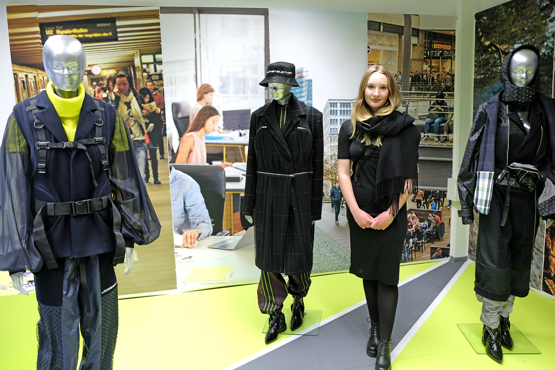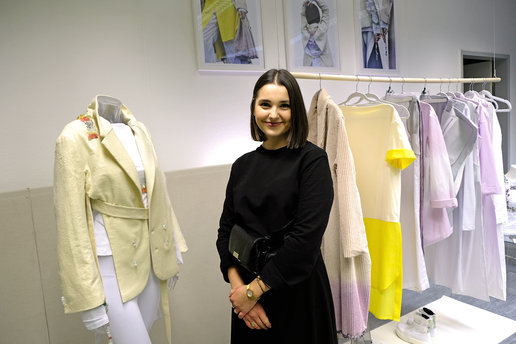 Im Fokus der Kollektion der Bachelor-Absolventin Roma Magdalena Pawlak steht die Stressprävention in einer schnelllebigen Zeit. Die Kleidungsstücke, die aus natürlichen und handgefärbten Stoffen gefertigt sind, „sollen den Tragenden bei Achtsamkeit im Alltag unterstützen“, so Pawlak. Neben Heilsteinen hat sie dafür auch kleine Meditationskarten in den Kleidungsstücken eingenäht.