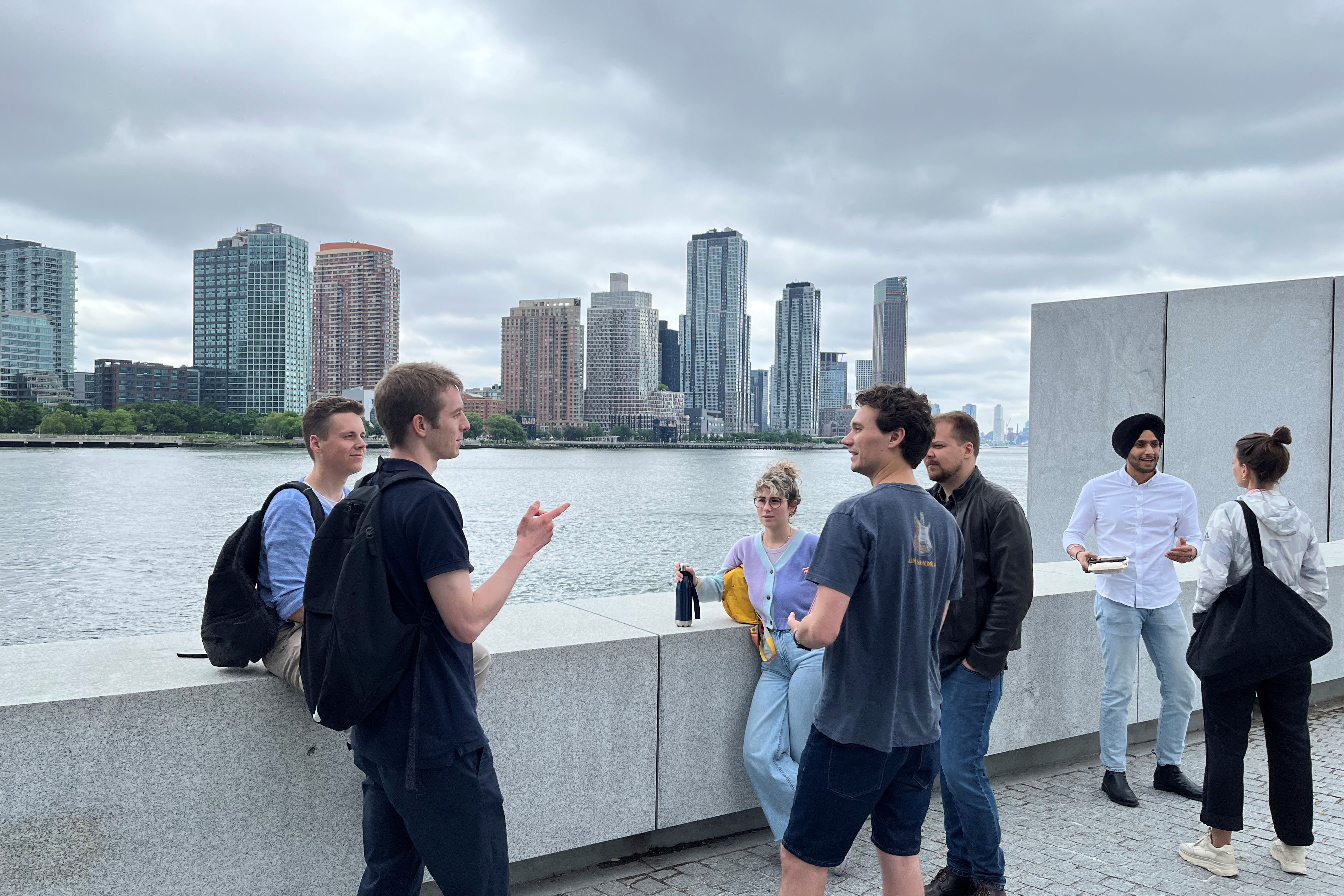 Bei dem Besuch auf Roosevelt Island stellt sich die Gruppe für ein Erinnerungsfoto vor der New Yorker Skyline auf. Imposant, aber für die meisten irgendwie auch schon normal. Niels Neier, Philosophie-Student und Praktikant im American Council on Germany, beschreibt das Phänomen – wie sollte es anders sein – aus einer philosophischen Perspektive. Er nennt es ‚Expectation Gap‘. Einerseits haben ihn ganz viele Dinge im „Big Apple“ überwältigt. So sehr, dass er es kaum glauben konnte. „Und dann gab es Sachen, die nicht so extrem waren, wie ich sie mir vorgestellt hatte. Die Straßen sind voller Menschen, aber doch nicht so voll wie in meinen Vorstellungen. Die Hochhäuser sind riesig, aber irgendwie hat es sich trotzdem ganz schnell vertraut und irgendwie normal, ruhig und gelassen angefühlt.“