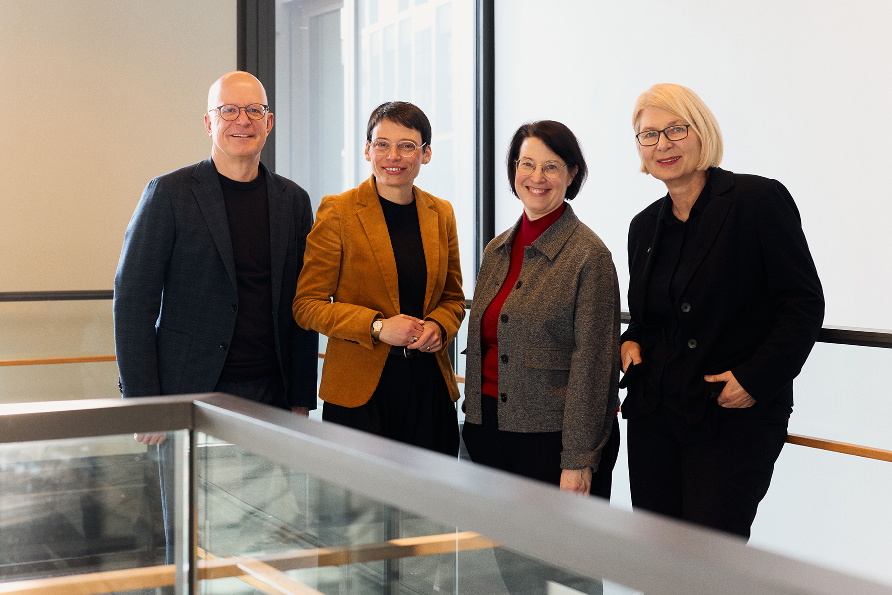 (v.l.) Dekan des Fachbereichs Sozialwesen Prof. Dr. Michael Stricker, NRW-Familienministerin Josefine Paul, Professorin für Bildung und Sozialisation im Kindesalter Dr. Helen Knauf und HSBI-Präsidentin Prof. Dr. Ingeborg Schramm-Wölk.