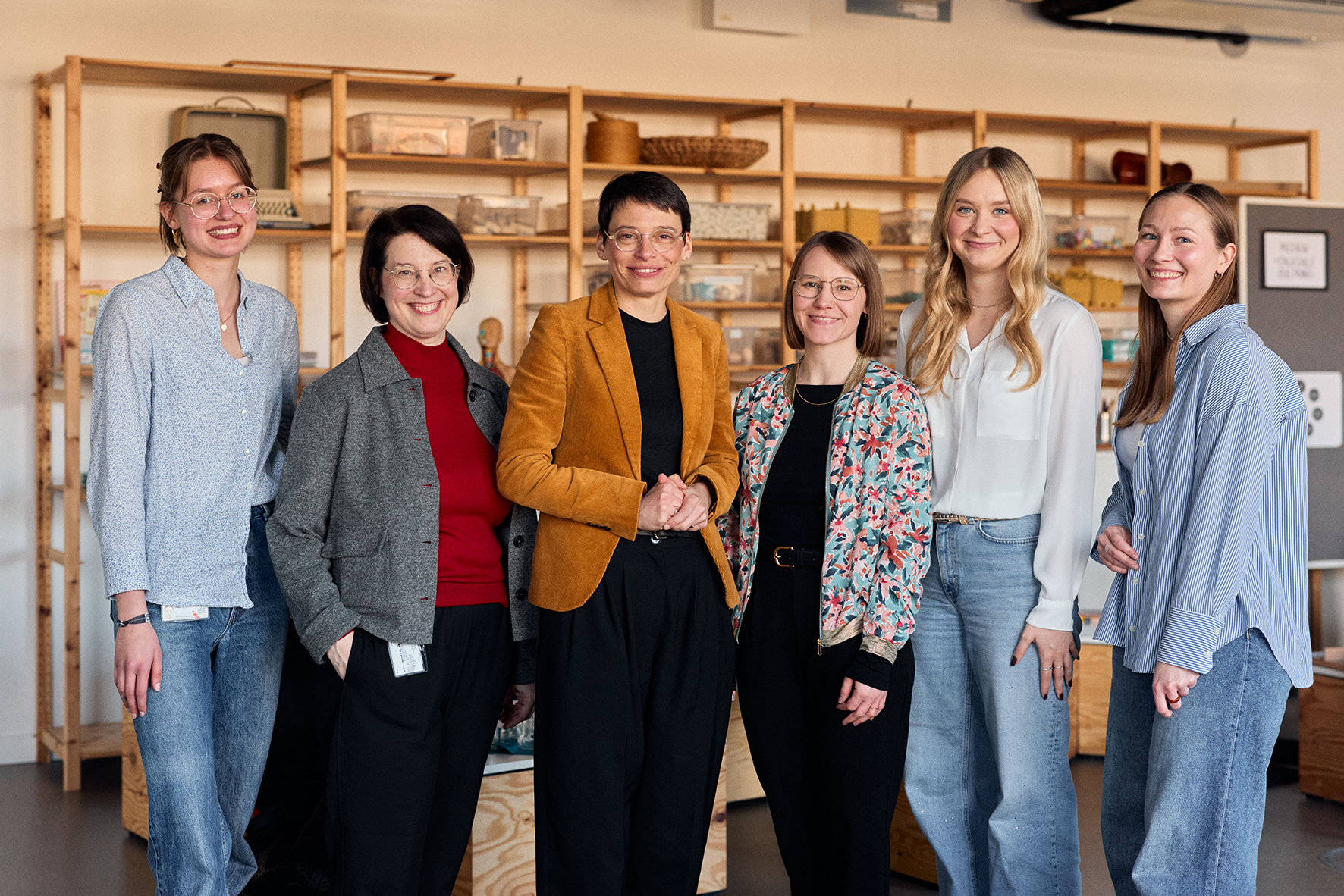 Ministerin Paul (3.v.l.) und das Team der Bildungswerkstatt des Fachbereichs Sozialwesen der HSBI, darunter Prof. Dr. Helen Knauf (2.v.l.) und Milena Förster (4.v.l.), die das Ministerium maßgeblich bei der Aktualisierung der „Bildungsgrundsätze NRW“ unterstützen.