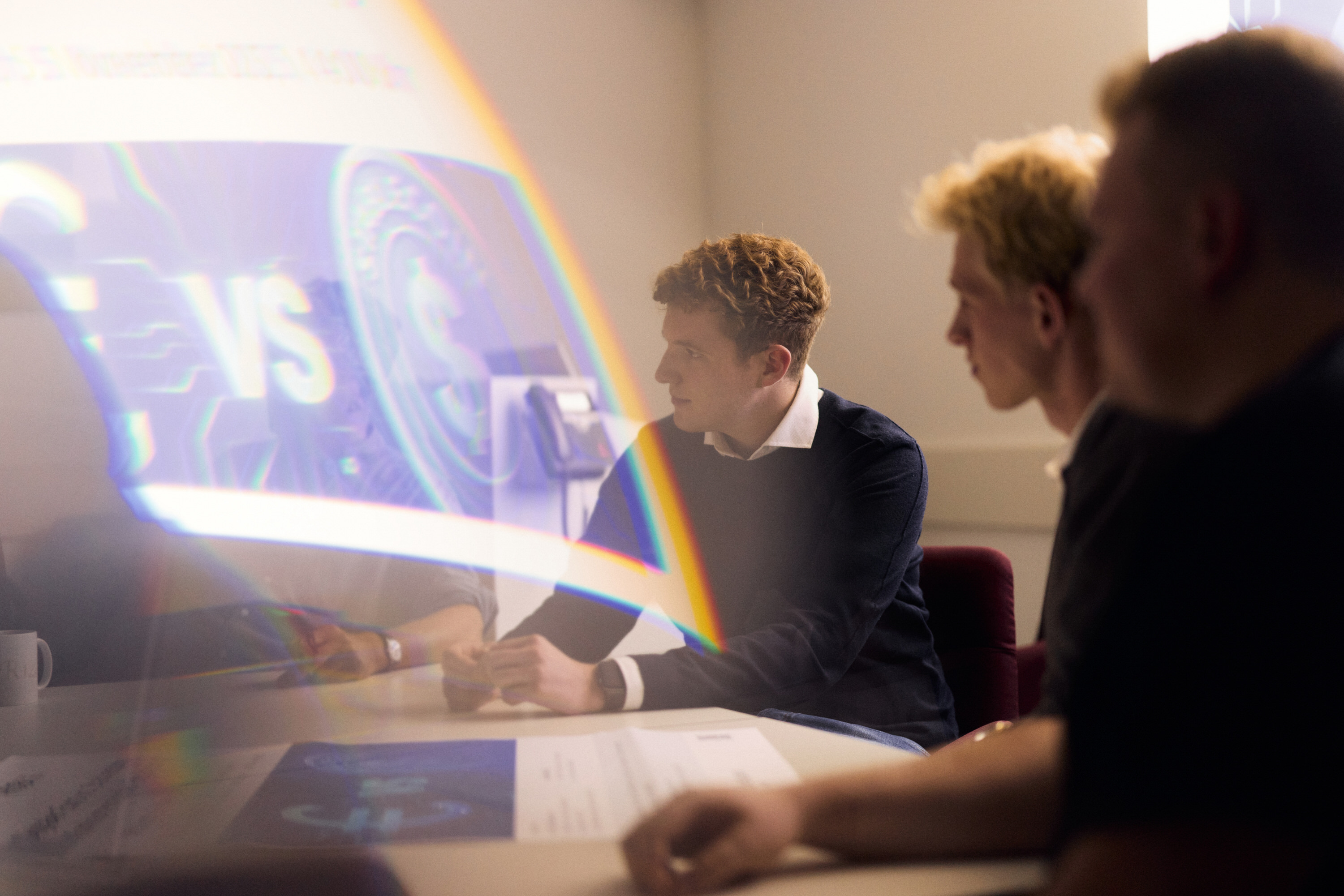 Dabei ist der Arbeitskreis Blockchain auch eine Art Übungsgelände, auf dem die Studierenden zugleich ihre Soft Skills trainieren, erzählt Julius Ester: „Wir können trainieren, wie man am besten präsentiert und moderiert, auch vor Publikum, aber ganz ohne Druck und Konsequenzen.“ Schließlich sind alle freiwillig dabei, es gibt keine Credit Points oder gar Noten. Stattdessen gibt es unmittelbares Feedback aus der eigenen Peergroup, ohne Profilierungsgehabe und in wertschätzender Atmosphäre. Julius Ester: „Man ist unglaublich motiviert und fühlt sich auch inspiriert, wenn man die unterschiedlichen Stärken der Leute zusammenbringt. Die einen sind fachlich top, andere können erstklassig moderieren und jeder in der Gruppe profitiert und lernt voneinander.“ Das bedeutet jedoch keineswegs, dass im Arbeitskreis auf eine kritische Auseinandersetzung verzichtet wird. Kritik ist erlaubt, sogar erwünscht. Ruben Vollmert schaut mit einem Grinsen zu Rainer Lenz und sagt: „Auch Kritik am Professor ist völlig ok.“ Alle lachen und Lenz gibt unumwunden zu: „Von manchen Dingen haben die Studis einfach mehr Ahnung als ich und ich lerne dazu. Super!“