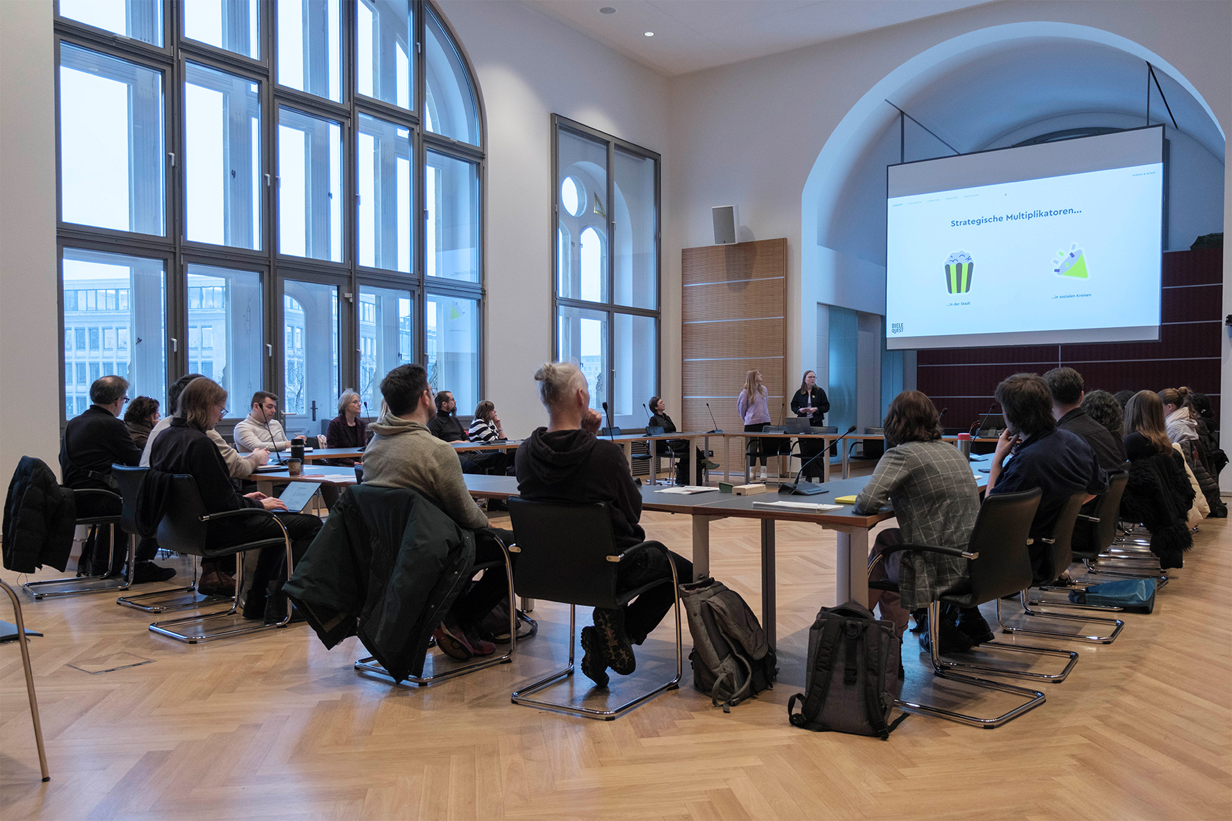 eine gamifizierte App („BieleQuest“), die junge Menschen per urbaner Schnitzeljagd motiviert, klimafreundliche Orte und Mobilität spielerisch zu entdecken,