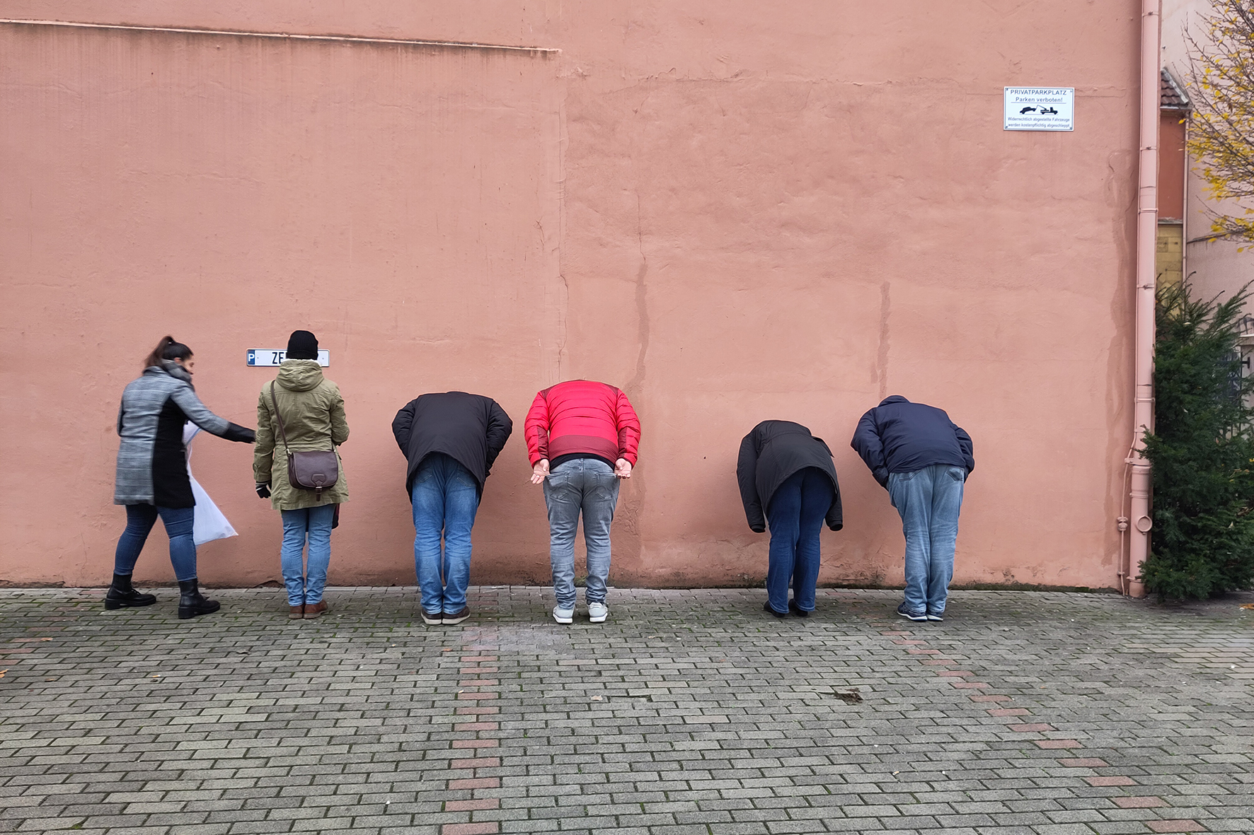 Auf zur nächsten Station: An der Ecke Alfred-Bozi-Straße/Elsa-Brändström-Straße steht die große Skulptur „Male/Female“ des Bildhauers Jonathan Borofsky. Sie soll ein Symbol für das Thema der Station sein: Wie unterscheiden sich männliche und weibliche Körper in der Medizin? Um die Unterschiede zu veranschaulichen, lässt Wissenschaftsguide Emilia Sposito die Teilnehmenden wieder sportlich aktiv werden. Für alle, die es ausprobieren wollen, folgt hier die Anleitung: