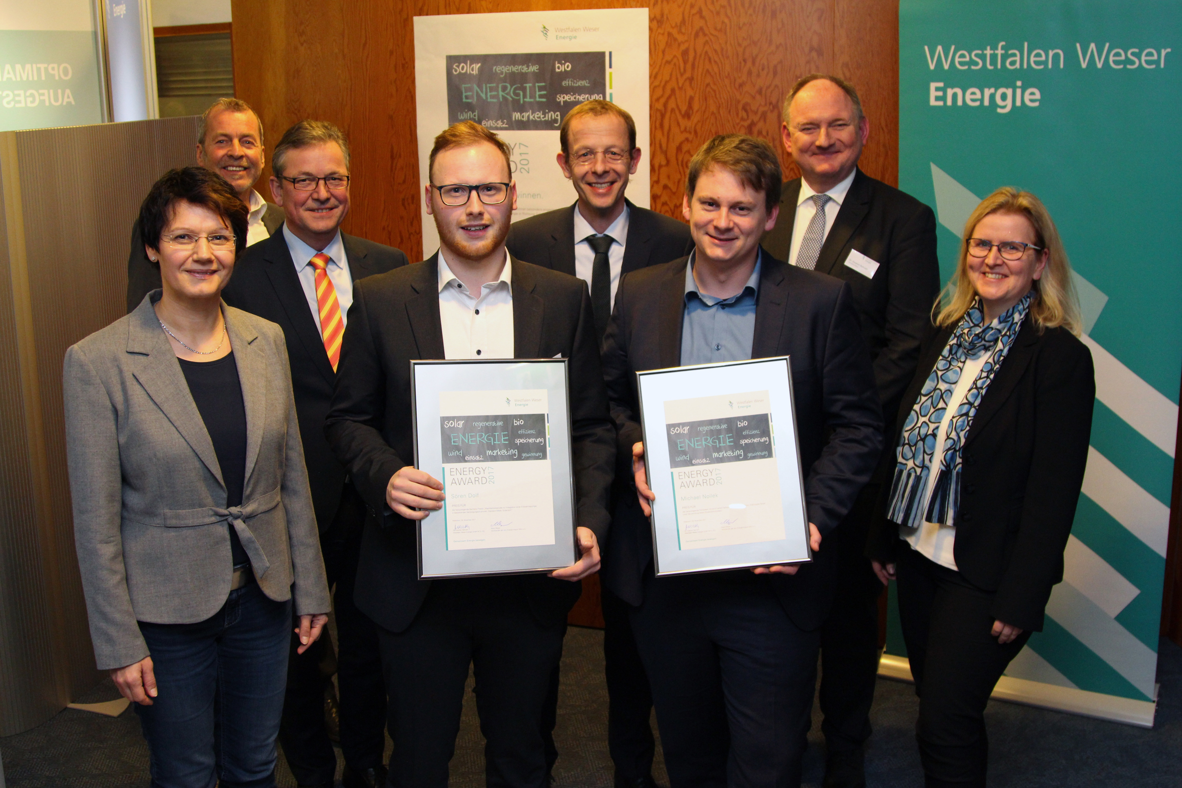 Die Preisträger kommen von der FH Bielefeld, der Universität Paderborn, der Hochschule Ostwestfalen-Lippe und der Hochschule Weserbergland in Hameln. Insgesamt wurden 9.000 Euro an Preisgeldern vergeben. Die ausgezeichneten Einzel- oder Projektarbeiten greifen die aktuellen Themen der Energiebranche auf und beleuchten Maßnahmen zur besseren Umsetzung der Energiewende oder rationellen Energienutzung. In diesem Jahr standen zwei Projektarbeiten aus dem Bereich Elektrotechnik im Vordergrund und fünf wissenschaftliche Arbeiten, die sich mit der Klimaeffizienz von Gebäuden befassten.