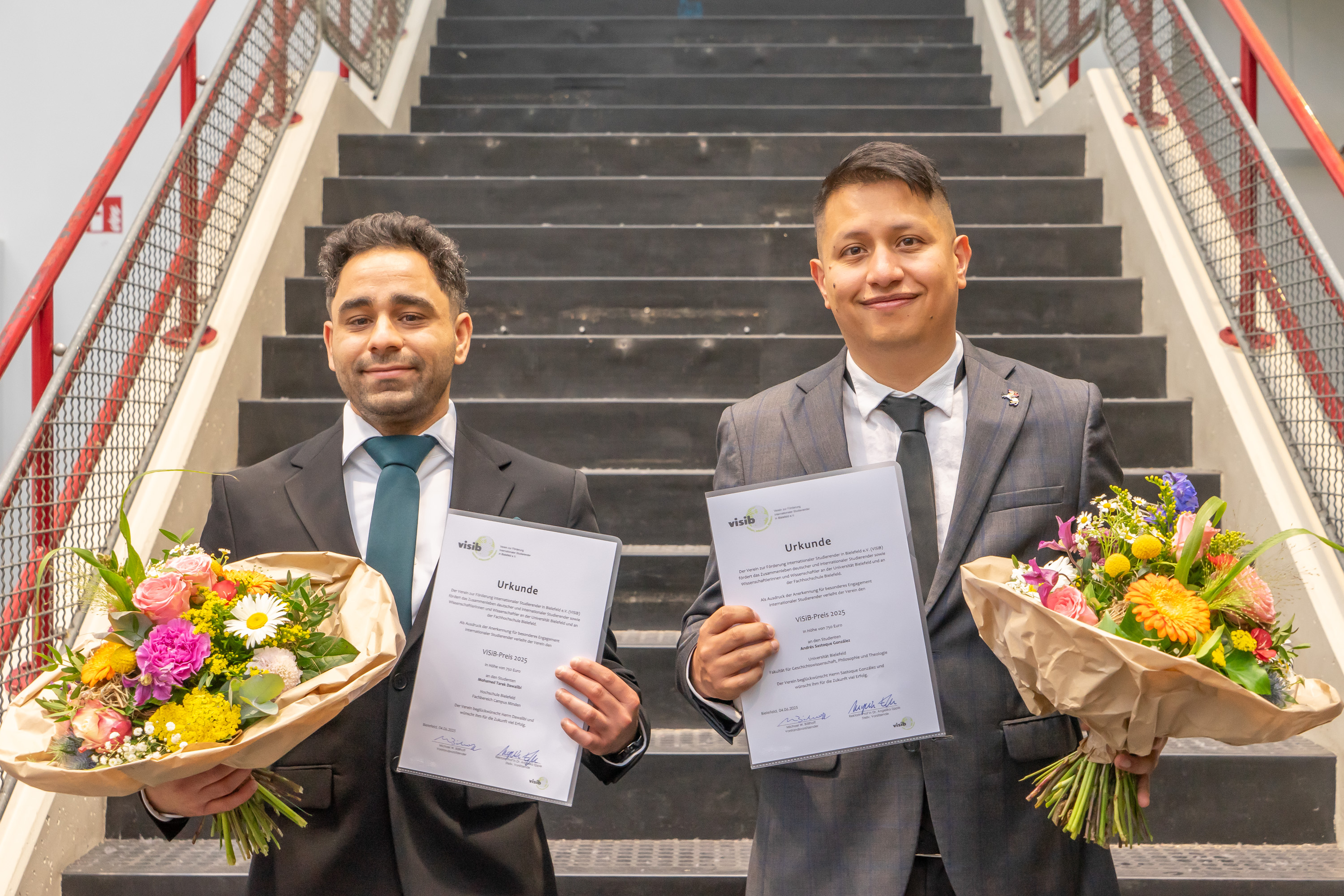 Die mit 750 Euro dotierten Preise wurden von Michael W. Böllhoff, geschäftsführender Gesellschafter der Böllhoff Gruppe und Vorsitzender von ViSiB, sowie Hannah Möhring vom International Office der HSBI überreicht: „Wir finden es besonders wichtig, neben den außergewöhnlichen Noten auch das persönliche Engagement der Preiträgerinnen und Preisträger zu ehren und ihre Umsicht sowie Einbringung in die Gemeinschaft durch die Verleihung des ViSiB-Preises im Namen aller Vereinsmitglieder zu würdigen“, so Böllhoff.