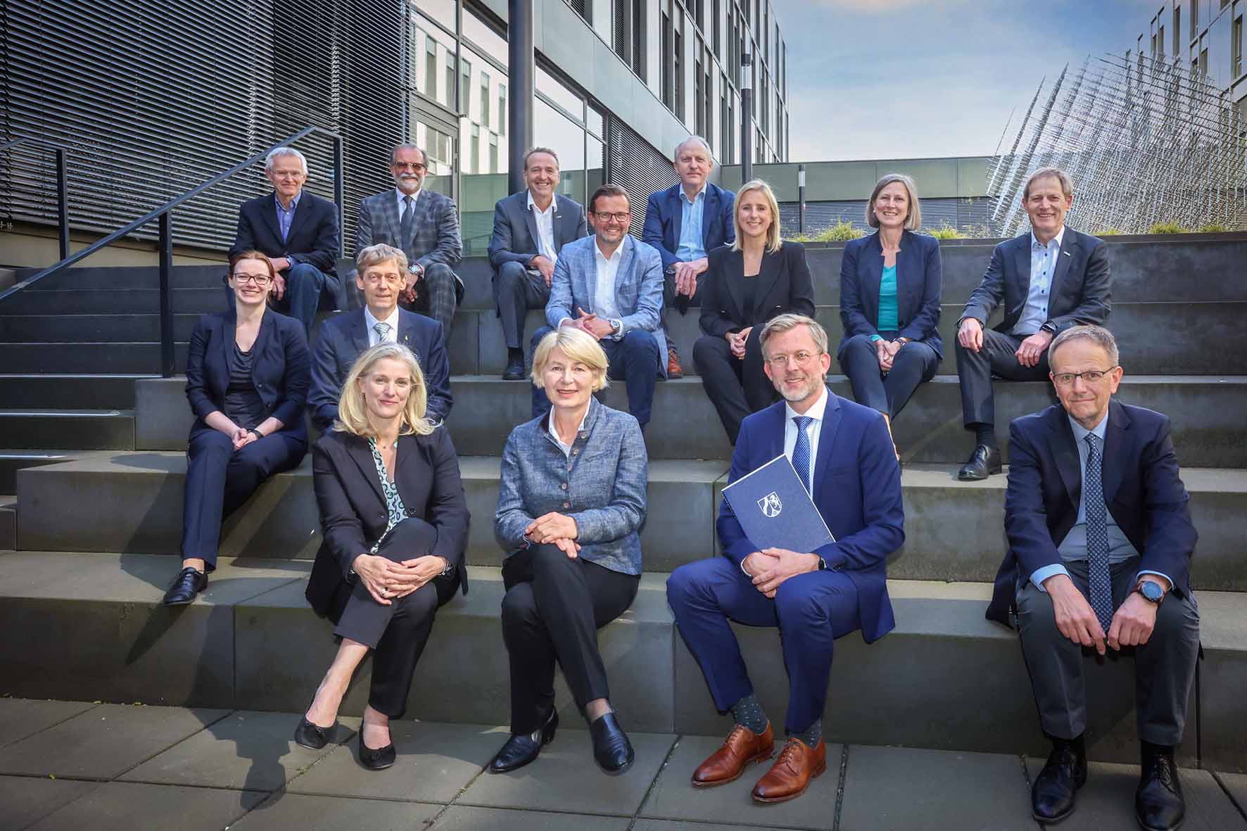 Reihe 2 von oben: Raphael Tigges (MdL NRW), Daniela Beihl (MdL NRW), Annette Nothnagel (Leitung REGIONALE 2022, OWL GmbH), Prof. Dr. Reinhold Decker (Prorektor für Informationsinfrastruktur und Wirtschaft Universität Bielefeld).
