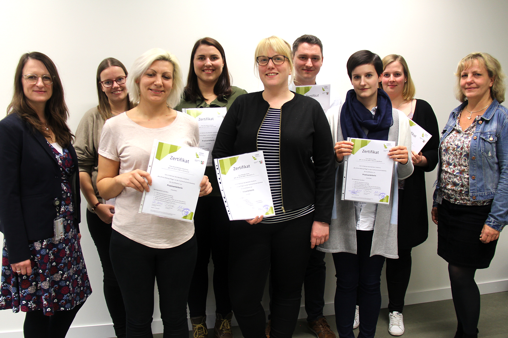 Bielefeld (fhb). Seit 2014 gibt es für Studierende des Bachelor-Studiengangs „Berufliche Bildung Pflege“ am Fachbereich Wirtschaft und Gesundheit der Fachhochschule (FH) Bielefeld die Möglichkeit, während des Studiums eine Praxisanleiterqualifizierung zu erlangen. Rund 25 Studierende bekamen nun von den Projektverantwortlichen Christiane Freese und Professorin Dr. Patrizia Raschper die Zertifikate überreicht, mit denen sie ganz offiziell Praxisanleiter und Praxisanleiterinnen in der Pflege sind.