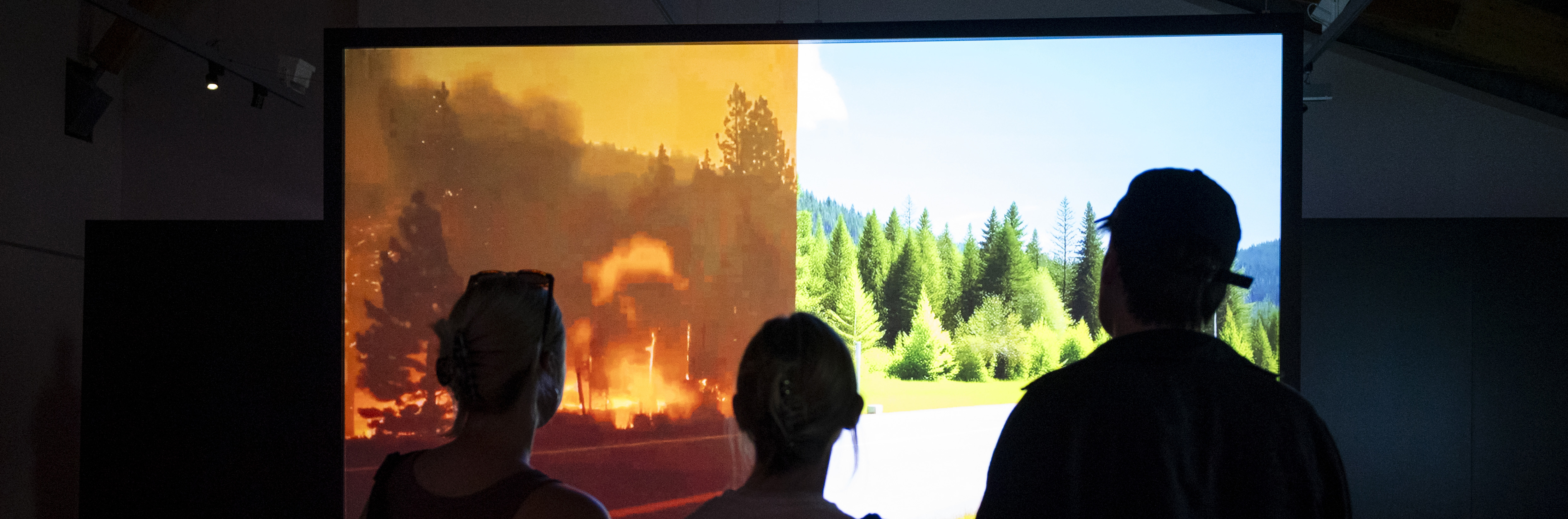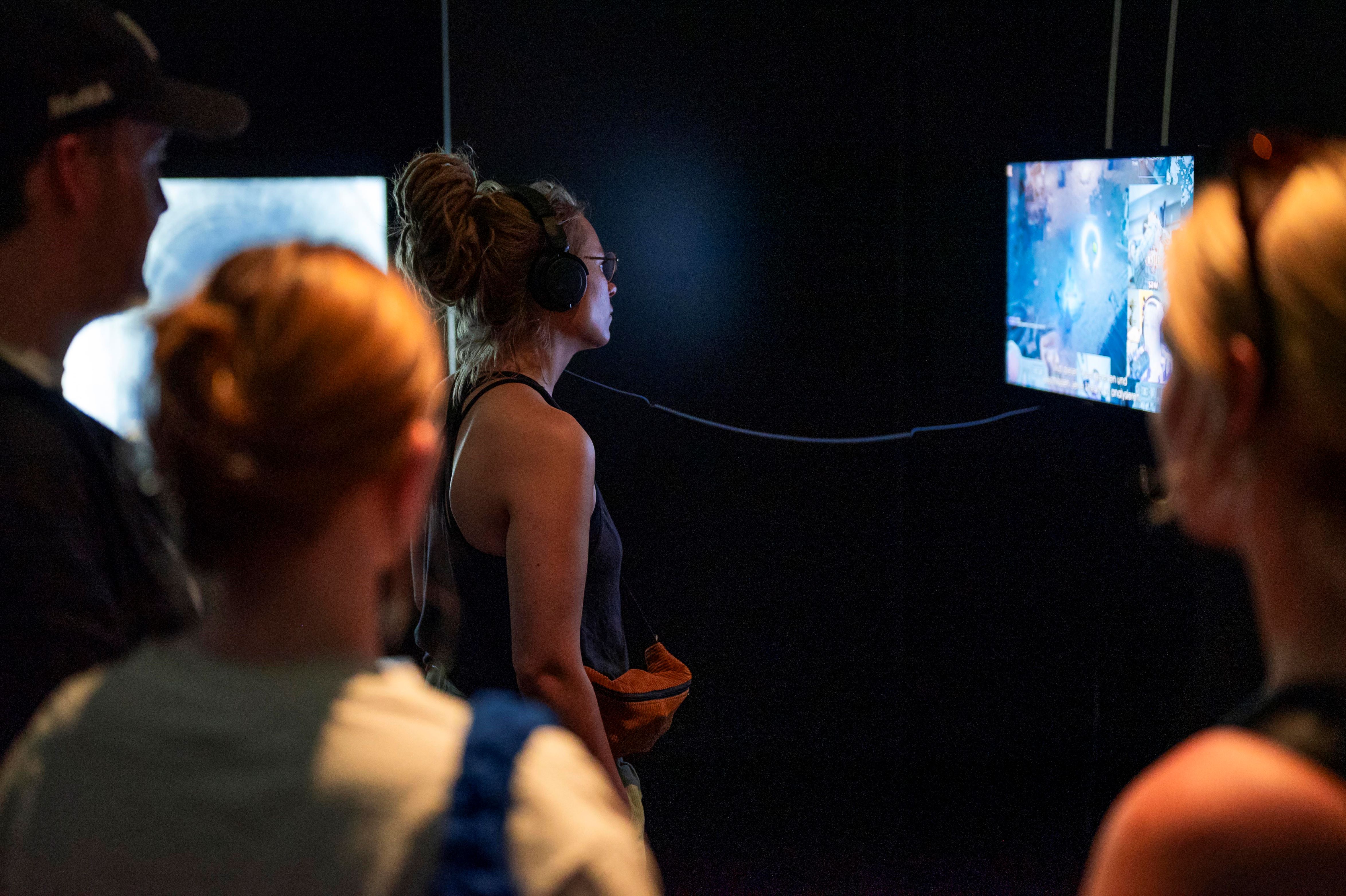 Digitale Technologien wirken jedoch nicht nur auf Individuen und Gruppe, sondern auch auf die Biosphäre. Das zeigt Colin Östermann in seinem Video „Artificial Contrasts“, indem er Bildern von Naturkatastrophen generierte grüne Idyllen gegenüberstellt. „Das Perfide daran ist, dass wir ahnen, dass die KI während der digitalen Regeneration der Natur ihr Zerstörungswerk an der Umwelt fortsetzt, weil ja Rechenleistung und Ressourcenverbrauch in Korrelation stehen“, sagt Claudia Rohrmoser.