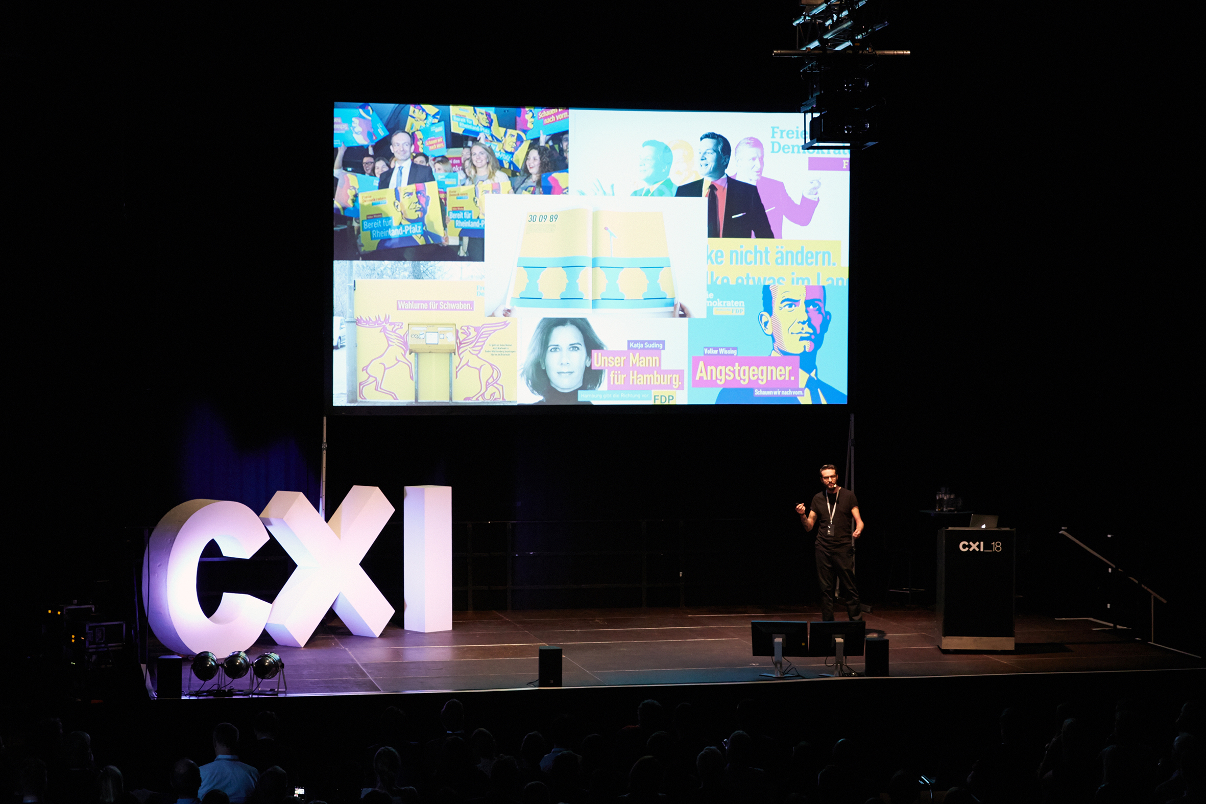 Dass Werbeagenturen auch Design können, bewies der Vortrag von Felix Steiner, Art Director bei Heimat, der ohne Vertreter auf Auftraggeberseite den Relaunch der Marke FDP vorstellte. Dem politischen Außenseiter, seit Jahren nur noch unter „Sonstige“ aufgelistet, gelang mit Hilfe eines neuen Erscheinungsbildes sowie Kampagnen der Wiedereinzug in den Bundestag sowie Länderparlamente. Die Aufgaben: »Awareness schaffen«, »Neuausrichtung kommunizieren», »Anwendbarkeit für alle«.
