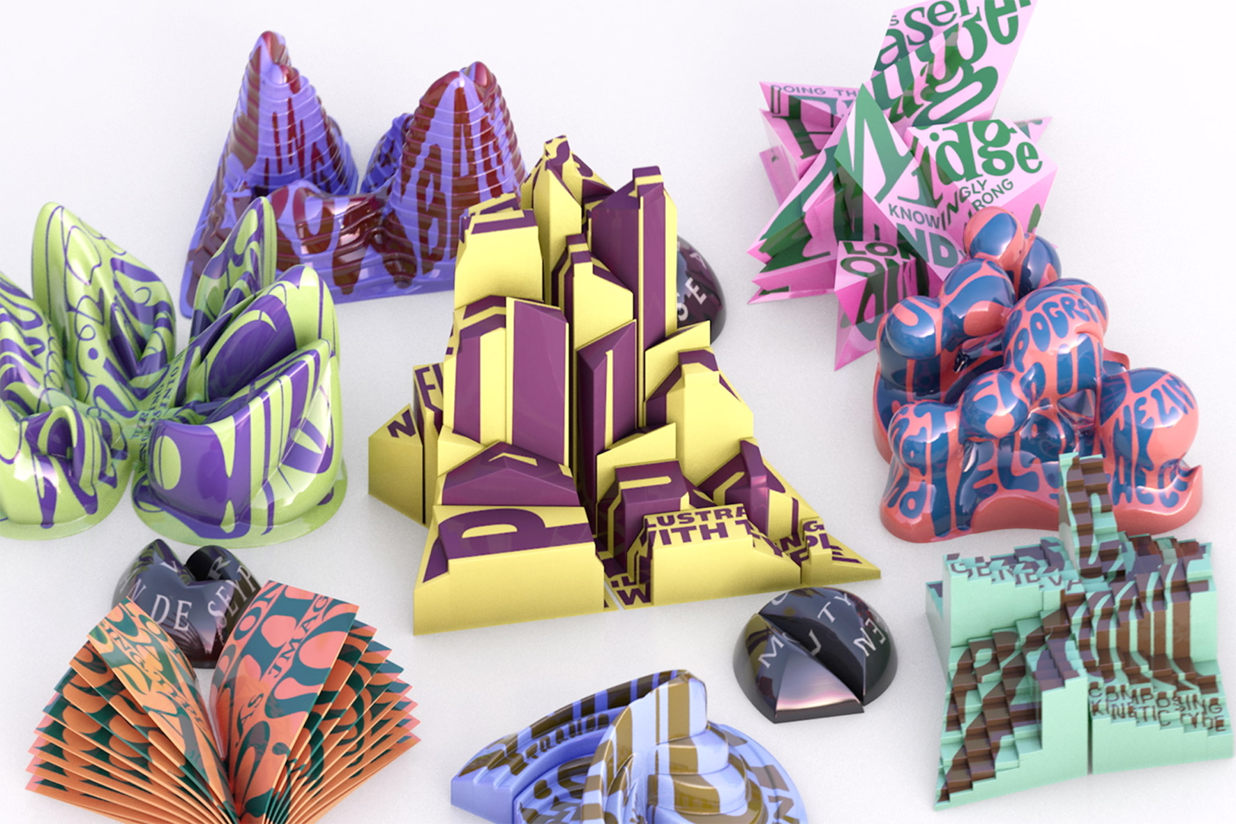 Für die typografischen Key-Visuals hat das Team aus Studierenden und Alumni des Fachbereichs Gestaltung den diesjährigen TDC-Award „Young Ones“ des renommierten New Yorker „Type Director’s Club“ erhalten.Bunt, laut und mit verzerrten Buchstaben auf dreidimensionalen Formen laden die Visualisierungen auf eine Reise durch Schrift und Raum ein.