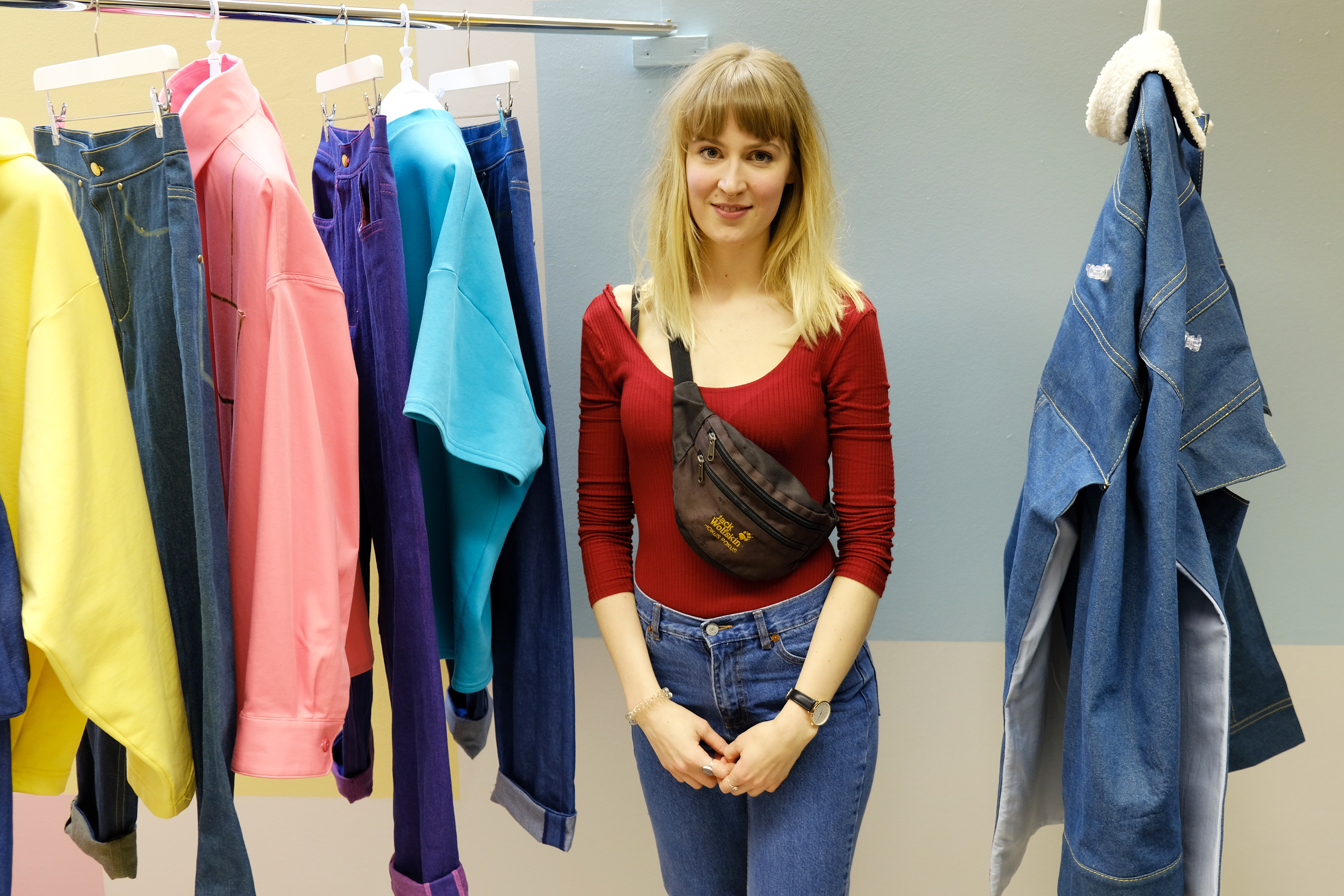 Mit Wandelbarkeit zum Thema Luft und Leichtigkeit hat sich Maike Muche in ihrer Bachelorarbeit auseinandergesetzt. Die Absolventin der Studienrichtung Mode hat eine Kollektion aus Jeanshosen, Oberteilen und Jacken entworfen. Einige von ihnen sind aufblasbar, einige Hosen mit Schweißnähten verziert.