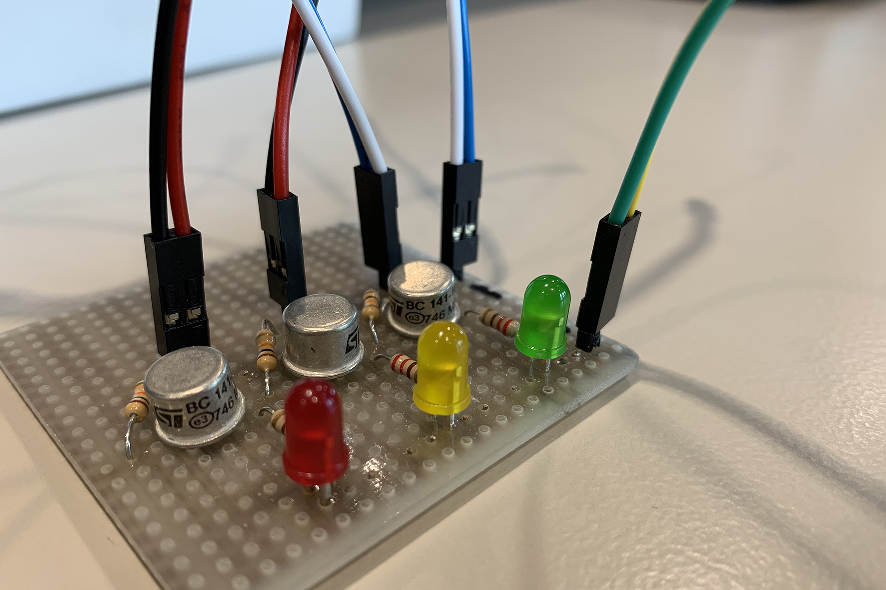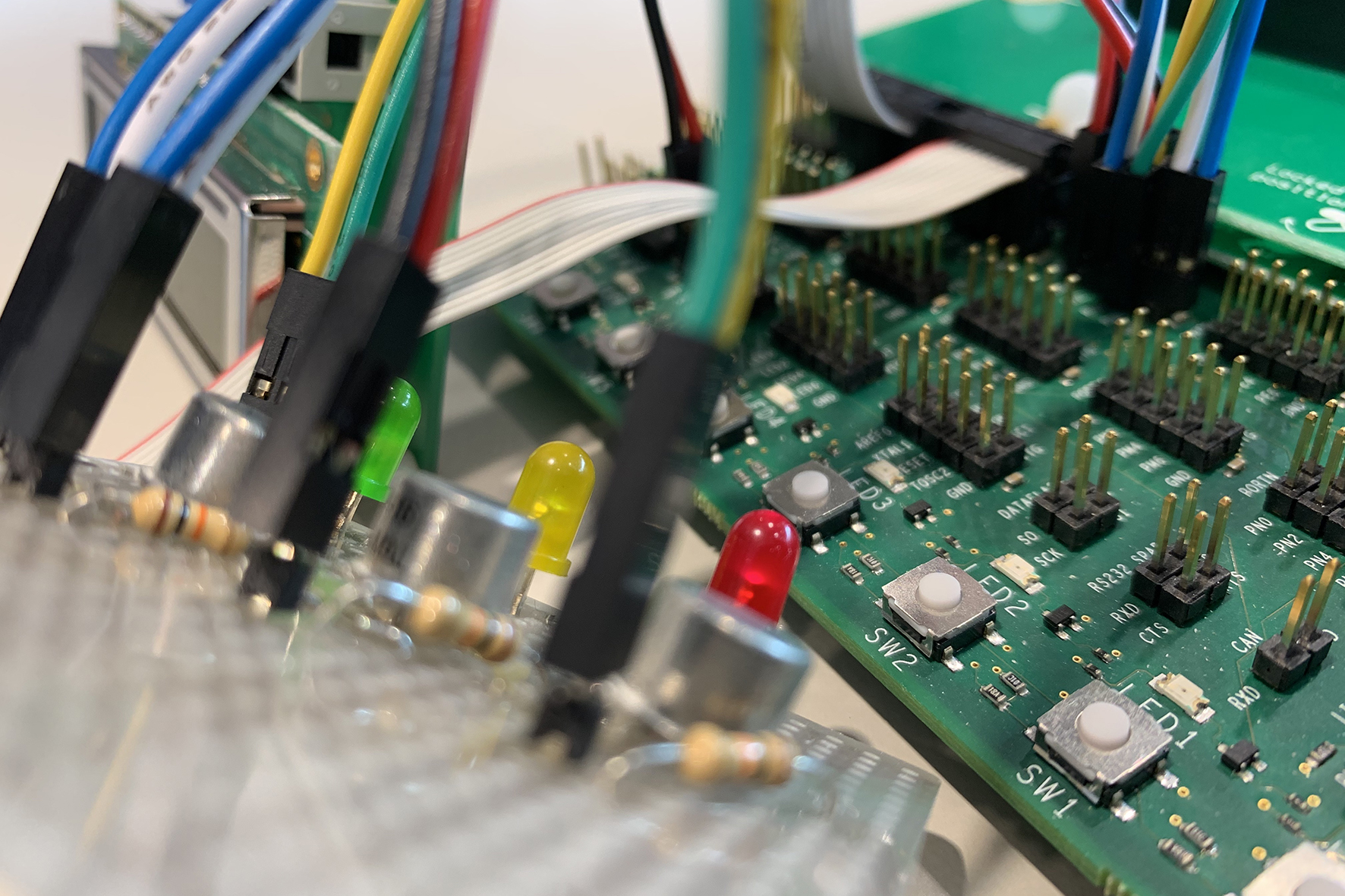 Doch wie sollten die drei Studierenden die Ampel gemeinsam entwickeln können, wenn die Maßnahmen zur Einschränkung der Corona-Pandemie doch gerade darauf hinwirken sollen, dass Menschen sich möglichst wenig physisch begegnen? Hesse entwickelte drei klar voneinander getrennte Einzelprojekte, mit denen jeder Studierende den Löwenanteil der Arbeit von zu Hause aus erledigen konnte. Die notwendige Hardware – ein Mikrocontroller-Board sowie ein Mess-Chip samt Beschaltung und Display – konnten sie zu Semesterbeginn am Haupteingang der FH Bielefeld abholen.