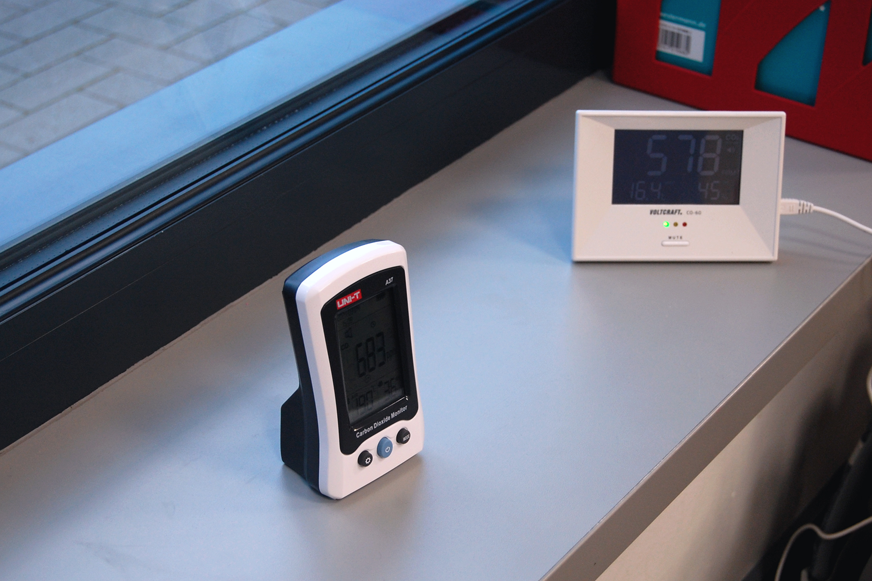 Auch am Campus Minden der FH Bielefeld engagieren sich Hochschulangehörige für eine Verbesserung des Gesundheitsschutzes in Zeiten der Pandemie. Hier lag der Fokus auf dem Erkenntnisgewinn für Lüftungskonzepte an Schulen. Im Zuge dessen nahmen Prof. Dr.-Ing. Johannes Weinig, Dipl.-Ing. Michael Koltermann sowie die Studierende Vanessa Schemberger vom Labor für Wasserwirtschaft, Abfalltechnik und Umweltanalytik Versuche an zwei Mindener Grundschulen vor, der Eine-Welt-Schule und in der Hohenstaufen Schule. Konkret ging es auch hier um die Messung der CO₂-Konzentration, diesmal allerdings ganz konkret in Klassenräumen, verwendet wurden handelsübliche Co₂-Messgeräte.