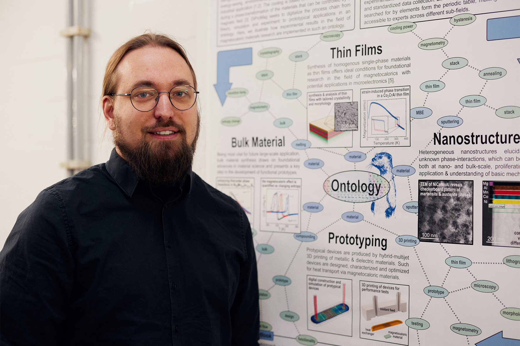 Wortmann vor einem seiner zahlreichen Poster, die die Flure der Experimentalphysik schmücken.