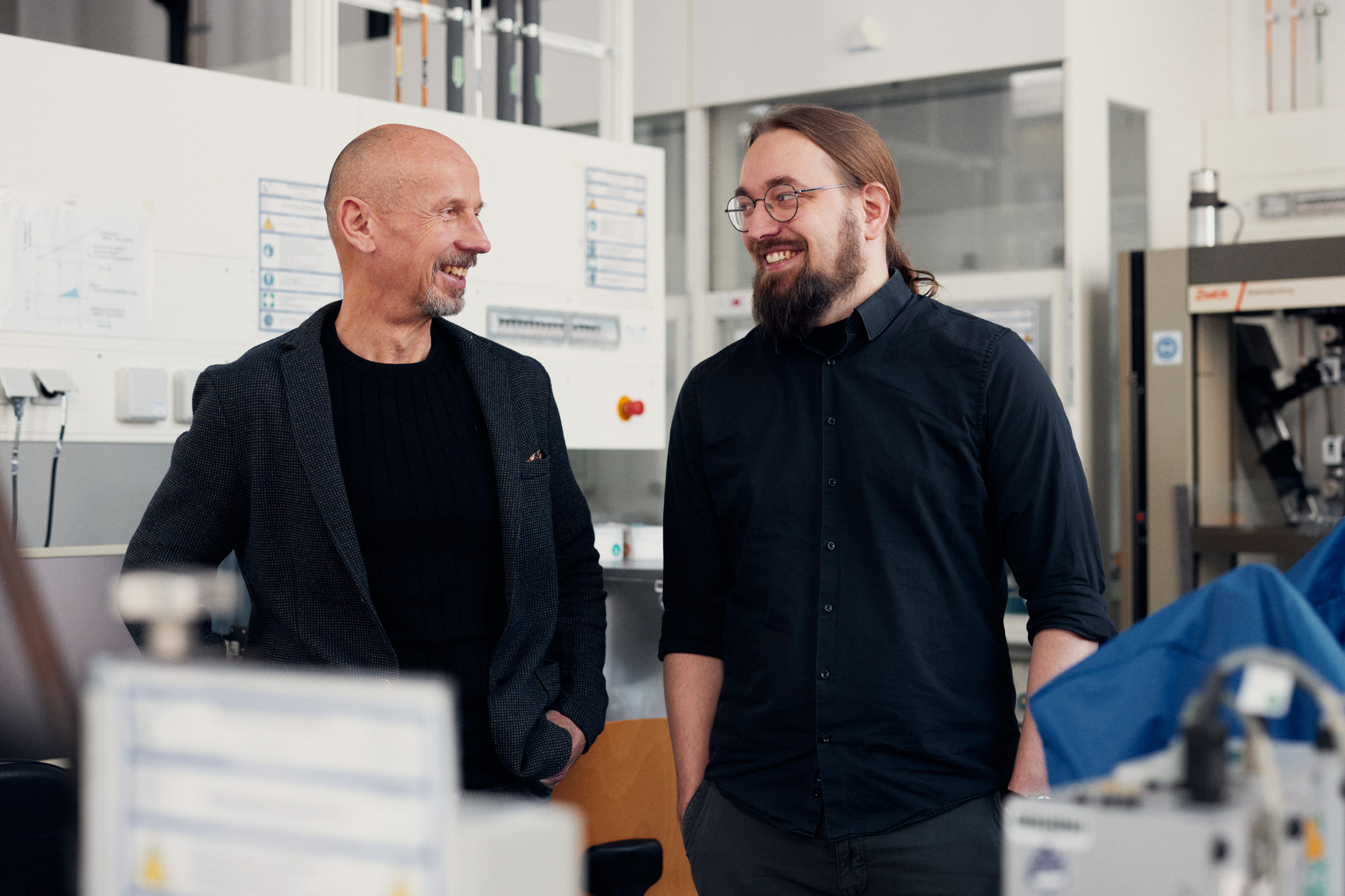 Nach dem Master allerdings hatte er trotzdem erst mal „keinen Plan“. Bis zu dieser Weihnachtsfeier 2015: Die AG Bielefelder Kunststofftechnik traf sich zum Glühwein, und Wortmann kam ins Gespräch mit seinem ehemaligen Hochschullehrer Prof. Dr.-Ing. Bruno Hüsgen von der heutigen HSBI. „Aus einer Laune heraus habe ich gefragt, ob ich nicht bei ihm promovieren könne“, erinnert sich Wortmann. Hüsgen darauf: „Eigentlich nicht, aber vielleicht kann man da was machen.“ Und Hüsgen konnte, denn damals gab es schon den 2012 zwischen der Universität Paderborn und der damaligen FH Bielefeld vereinbarten Weg der kooperativen Promotion im Bereich der Kunststofftechnik. Im April nahm Martin Wortmann als Wissenschaftlicher Mitarbeiter seine Forschungstätigkeiten an der FH Bielefeld im Rahmen eines Drittmittelprojektes auf. Seine darauf aufbauende Dissertation wurde gemeinsam von Prof. Dr. Elmar Moritzer von der Uni Paderborn sowie Prof. Dr. Hüsgen betreut. Wortmann begann an der Diffusion in Polymeren und an Nanomaterialien zu forschen, entwickelte neue Projekte, schrieb einen Forschungsantrag nach dem anderen. „Meine Begeisterung für die Wissenschaft entflammte“, erinnert er sich. „Mein Engagement wuchs, und ich habe Ehrgeiz entwickelt.“