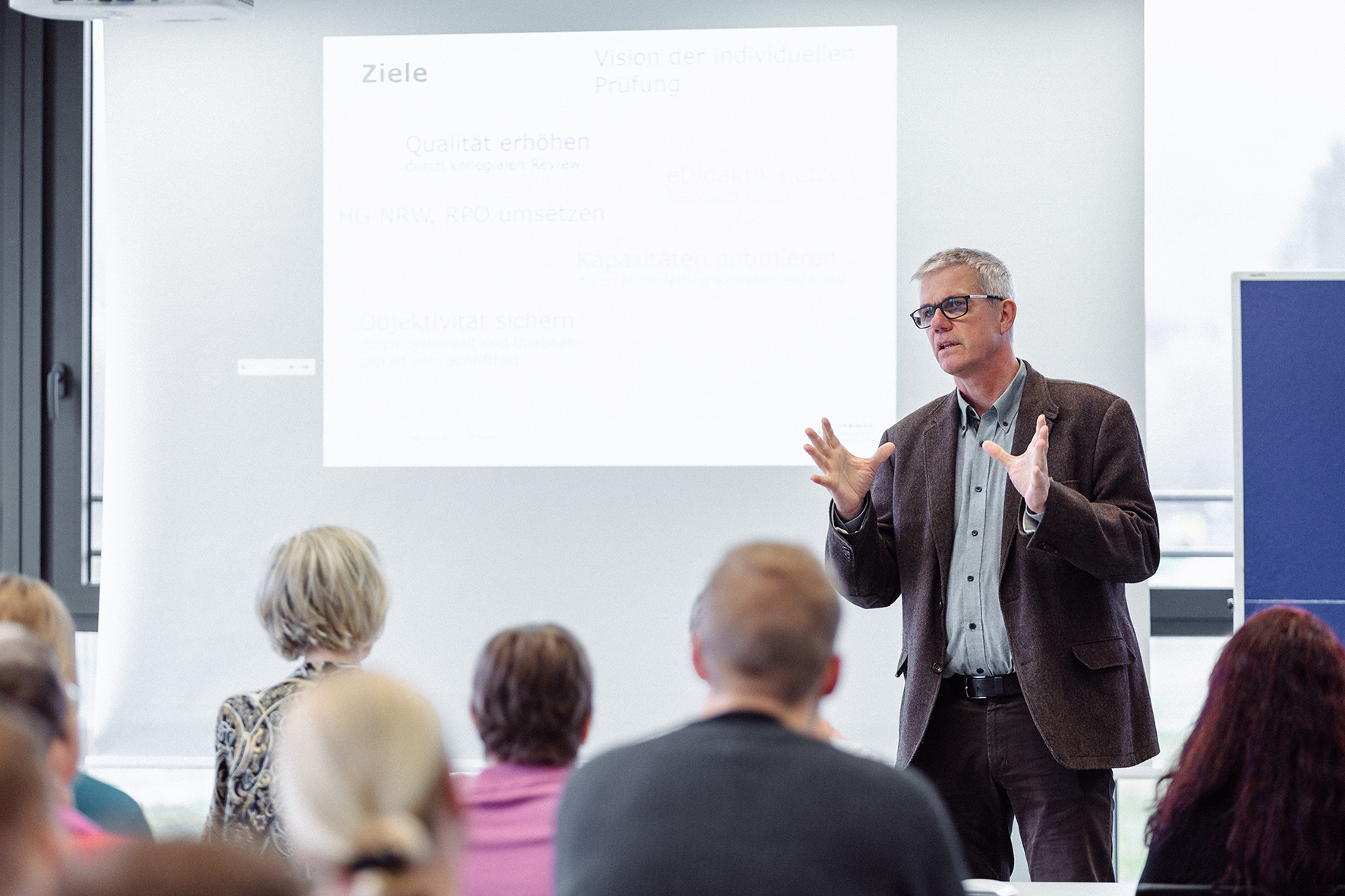 Das nachfolgende Konferenzprogramm war der Vorstellung und Diskussion von guten Beispielen aus der Lehrpraxis an der FH Bielefeld gewidmet. Die Themen reichten von E-Learning in der Schreibdidaktik über den Einsatz von LearningTools bis zu elektronischen Prüfungen und Game Making in der Programmierausbildung bis hin zu Storyboarding als didaktischem Planungsinstrument für die Erstellung von eLearning-Medien. Workshopleiter Prof. Dr. Hans Brandt-Pook resümiert: „Es ist möglicherweise ein guter Einstieg, Lehr-Lernszenarien eins zu eins aus dem Analogen in digitale Kontexte zu übernehmen. Für die Entwicklung digitaler Lehrformate bedarf es aber vor allem neuer Konzepte.“ Die Teilnehmenden nutzten die Gelegenheit, Anregungen für die eigene Lehrpraxis mitzunehmen, sich zu vernetzen und miteinander ins Gespräch zu kommen.