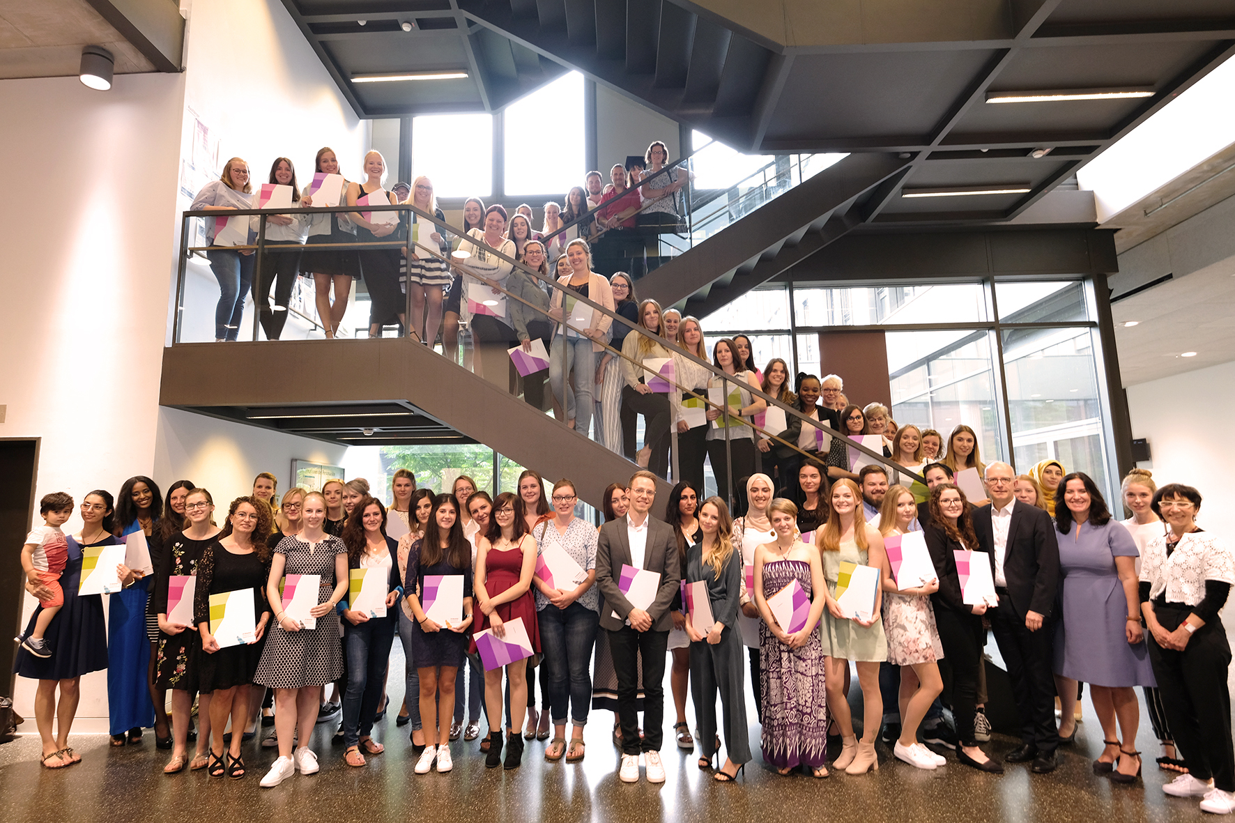 Überreicht wurden die Abschlussurkunden neben dem Dekan und Prof. Dr. Yüksel Ekinci von Christiane Möcker, Leiterin des Praxisreferats am Fachbereich und somit Ansprechpartnerin für die Studierenden in Fragen rund um Praktika oder das Berufspraktische Jahr. „Mit dem Studienabschluss haben Sie sich viele Wege, von Wissenschaft bis Berufspraxis, erschlossen. Für die Zukunft wünsche ich Ihnen, dass Sie sich von Zuversicht und Neugier treiben lassen“, so Möcker.