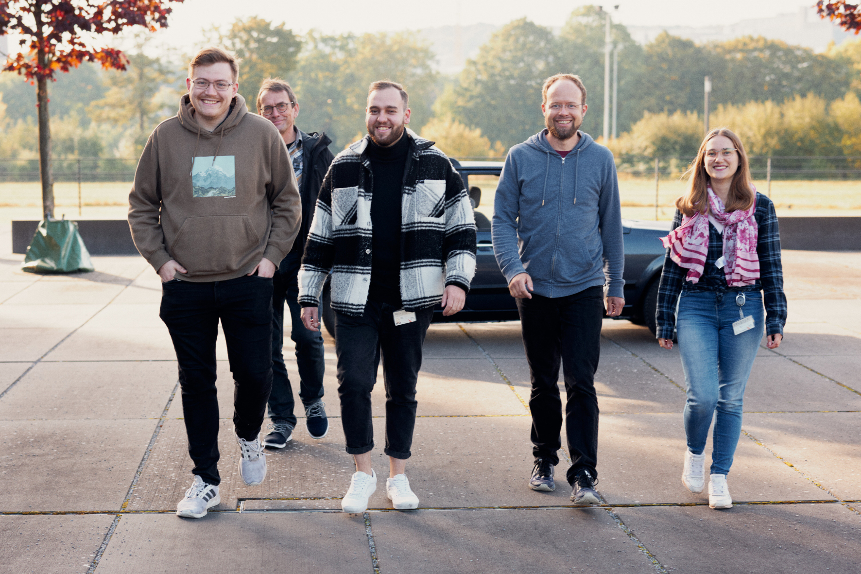 Sie machten das Fahrzeug fit fürs Museum (v.l.n.r.): Zak Bushell, Eckhard Trakies, Thomas Engelmann, Kersten Kröger, Melina Gurcke.