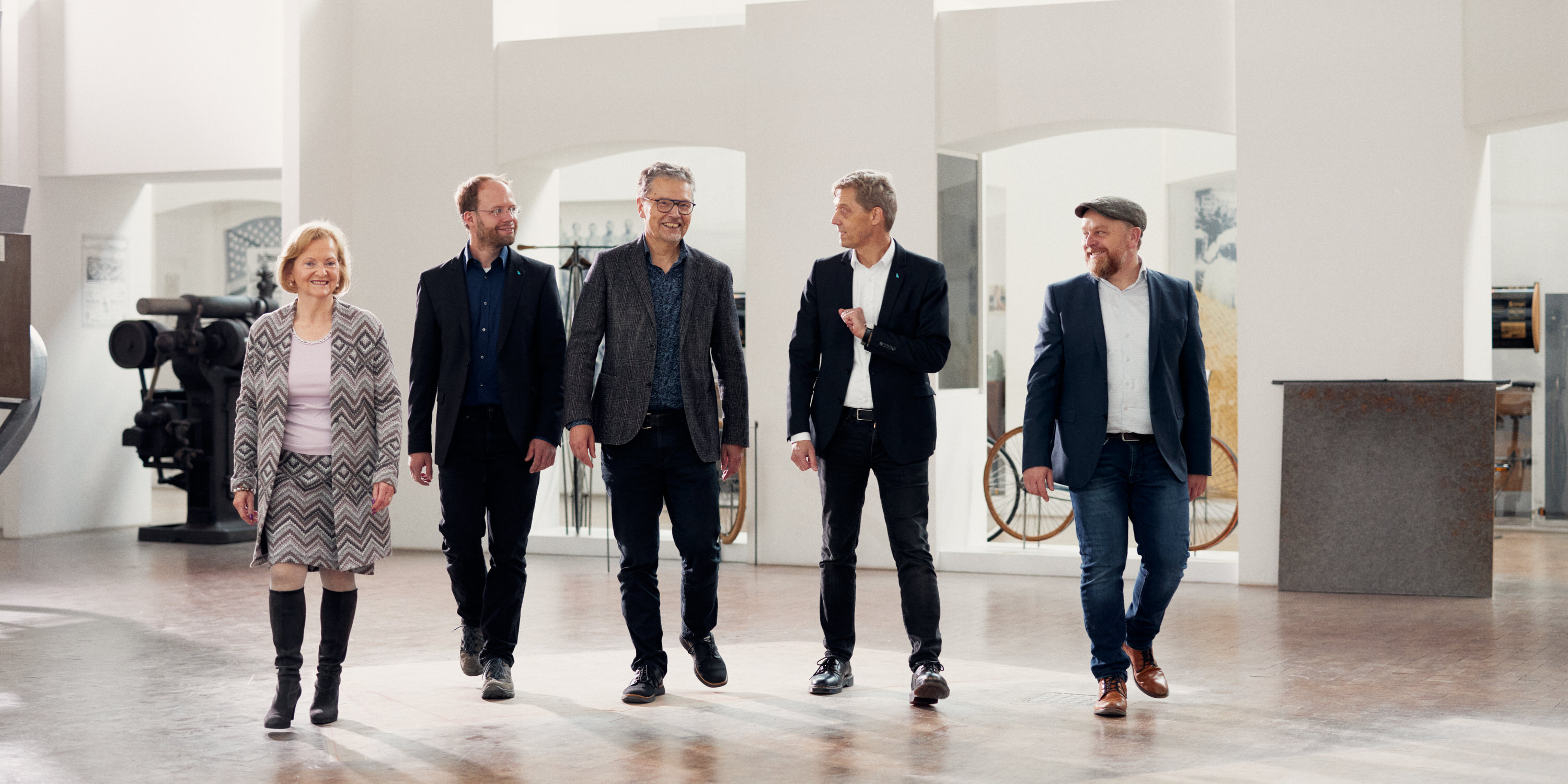Er war seiner Zeit voraus und zeigte schon 1994, wie alltagstauglich und nachhaltig Elektro-Pkw konzipiert werden können: der E-Fox. Das Fahrzeug wurde einst von Studierenden der FH Bielefeld auf Basis eines VW Polo II entwickelt und dürfte das erste „normale“ Elektroauto mit Straßenzulassung in OWL gewesen sein. Nun wird der E-Fox fester Bestandteil der Dauerausstellung des Historischen Museums Bielefeld.(v.l.n.r.) Hildegard Schumacher-Grub, Prof. Dr. Jens Haubrock, Dekan Prof. Dr. Rolf Naumann, Leiter des Historischen Museums Dr. Wilhelm Stratmann und wissenschaftlicher Mitarbeiter Kersten Kröger.