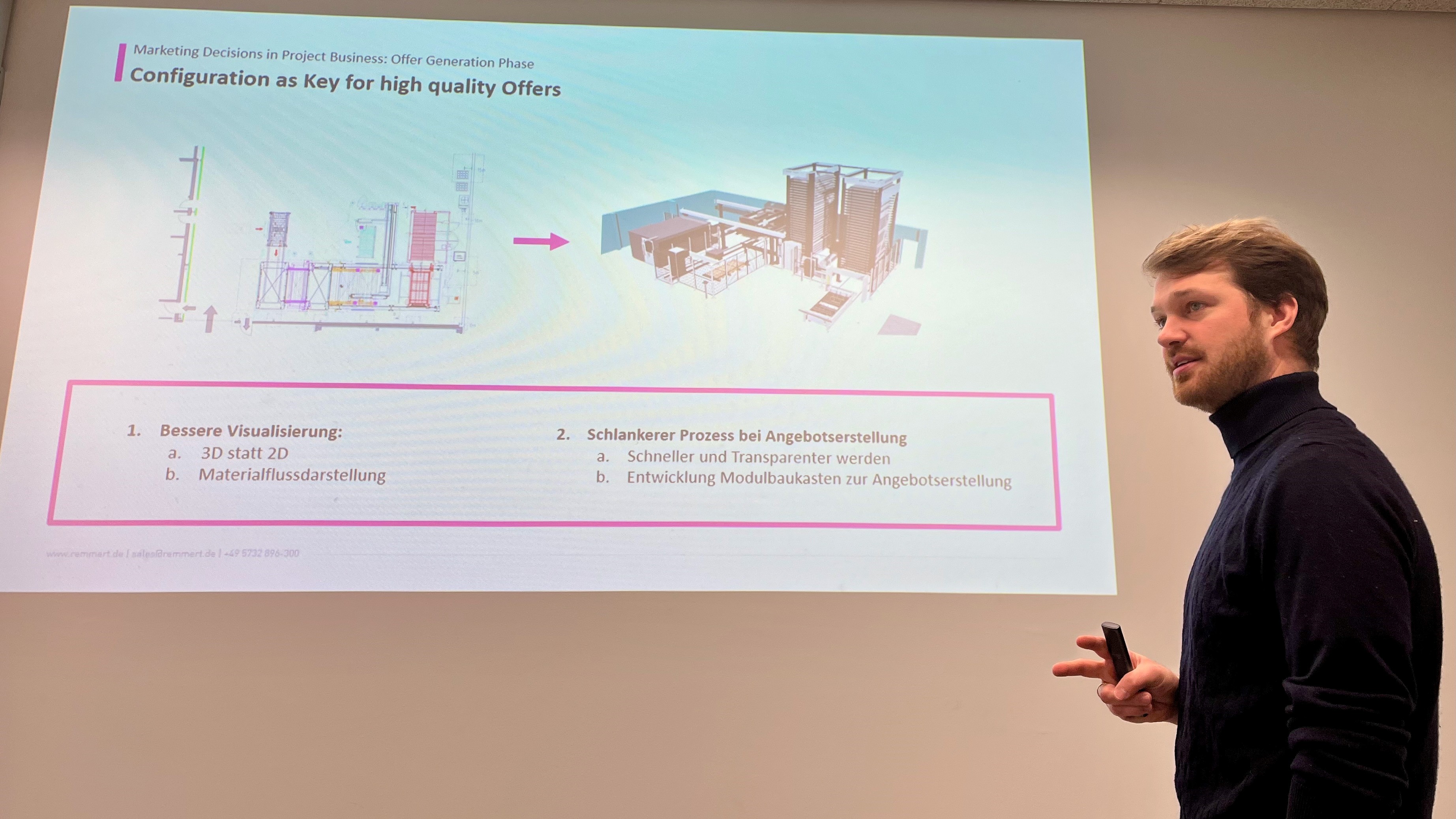 Im aktuellen Wintersemester fanden Gastvorträge von zwei Unternehmen aus der Region statt. Dr. Philipp Buff gab als Head of Industrial Services Einblicke in das Projektgeschäft bei der Remmert GmbH (www.remmert.de). Ob in der Lagertechnik, der Automation von Sortiervorgängen oder der Wartung und Inspektion installierter Anlagen – die Angebote der Firma Remmert werden im Rahmen umfangreicher Projekte realisiert, bei denen Kunden intensiv in die Werterstellung eingebunden sind. Neben einem thematischen Überblick anhand vielfältiger Beispiele wies Dr. Philipp Buff auch auf die besondere Bedeutung des Vertrauens in Geschäftsbeziehungen hin.